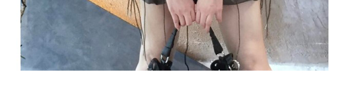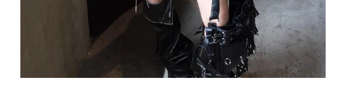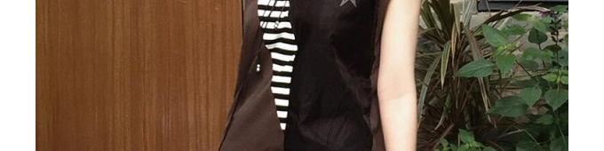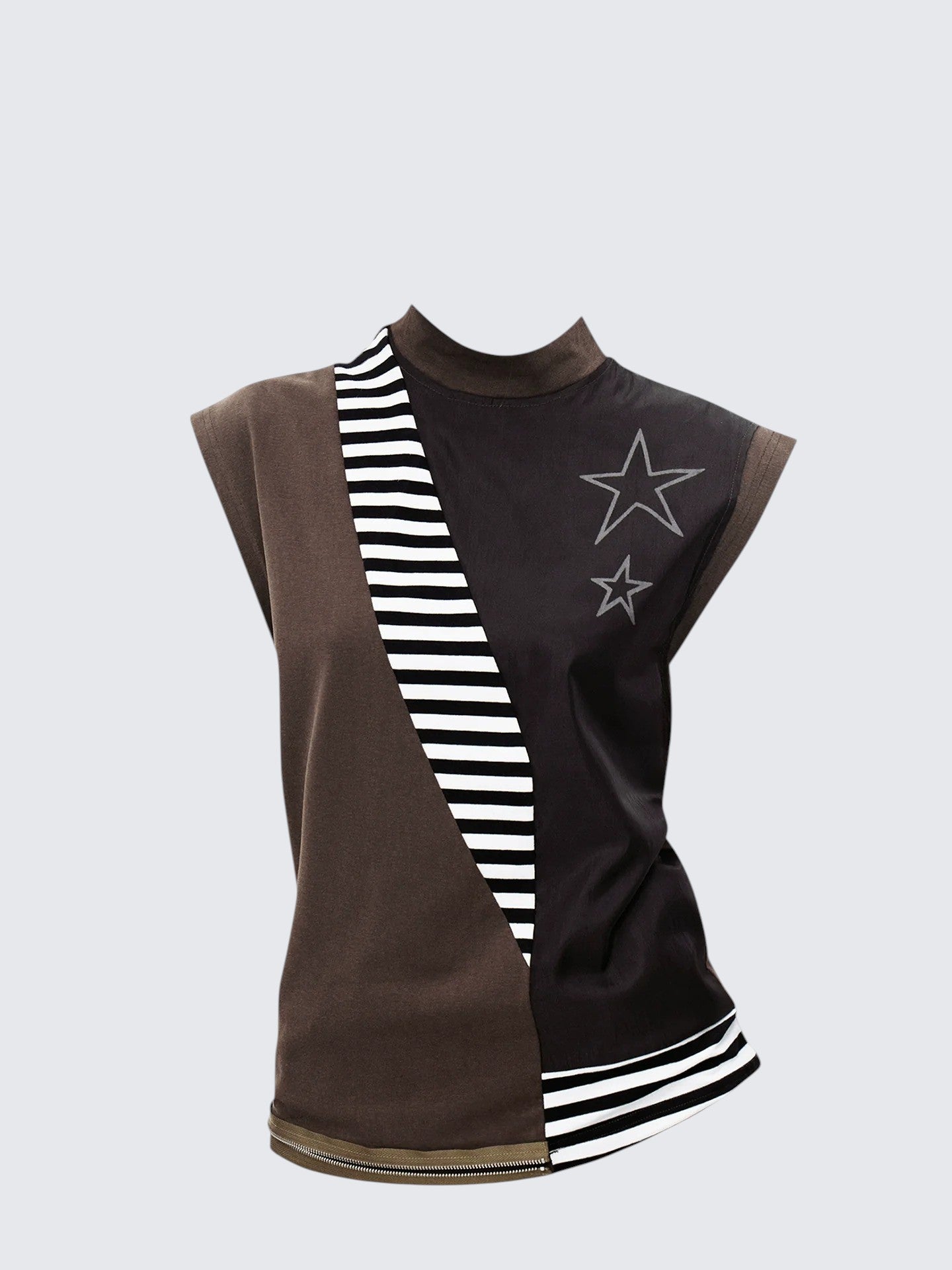 - Top: Unique irregular striped mesh sleeveless top with high collar and waist-fitted design for a chic silhouette.
