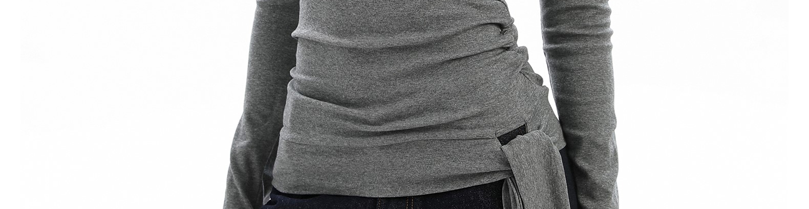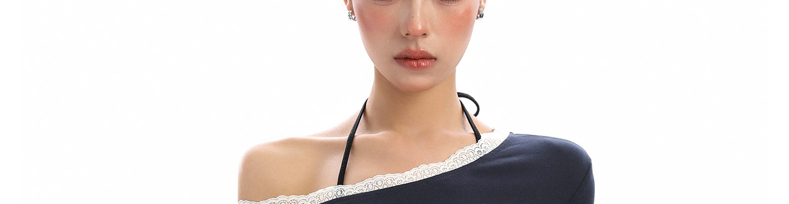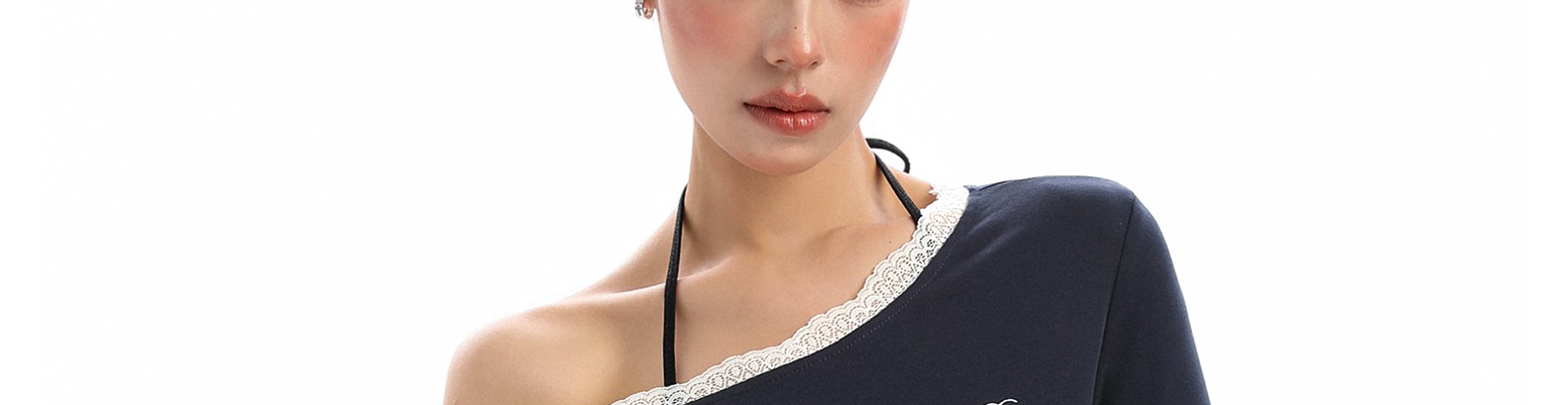 Retro colorblock off-shoulder tee with strap. Slim fit, chic design, early autumn casual wear.