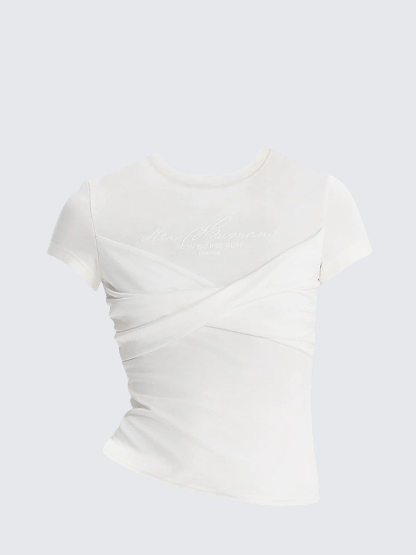 - Top: Slim-fit short sleeve T-shirt with colorblock design and twist bustier detail for a unique summer look.
