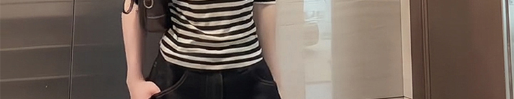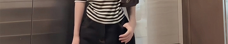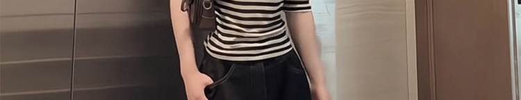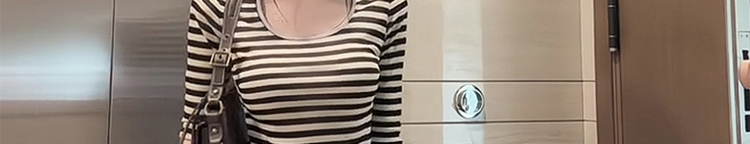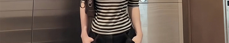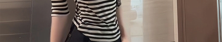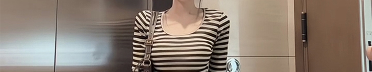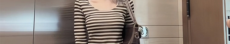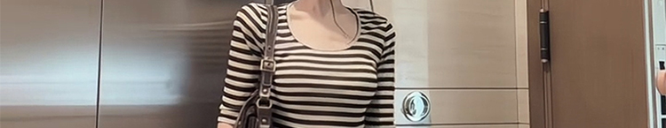 American retro U-neck mid sleeve tee with colorblock stripes. Slim fit, light and comfortable for early autumn.