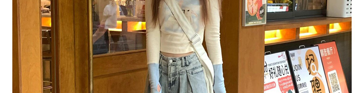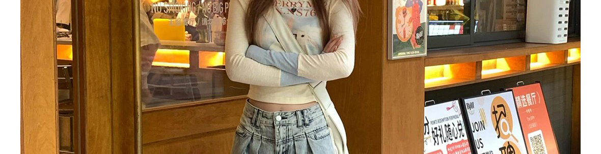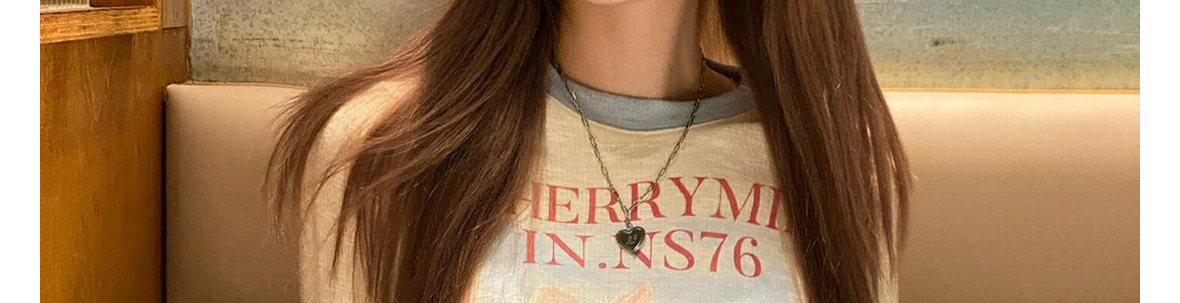 Creative American-style contrast color tee with unique print. Slim fit and stylish design for daily layering.