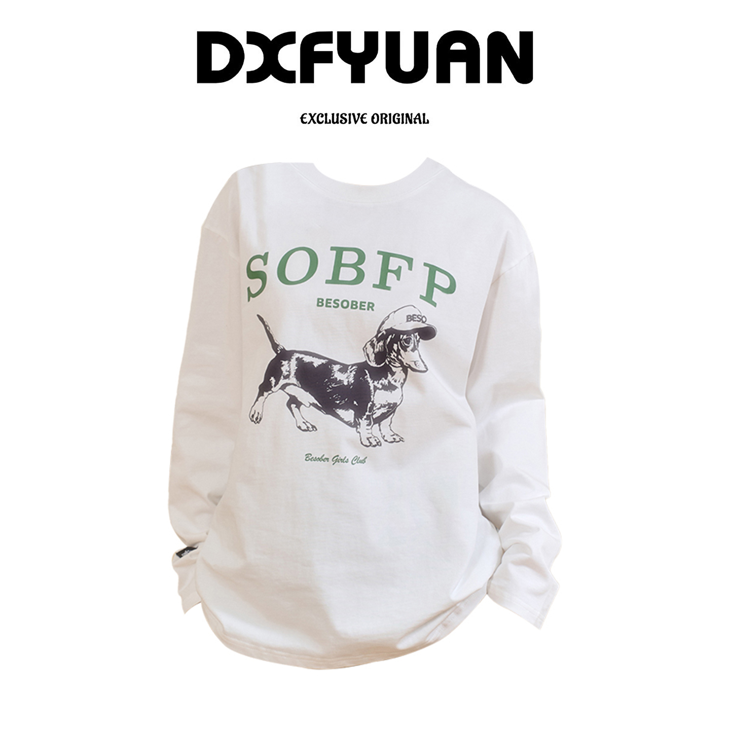 Retro dachshund print sweatshirt with round neck. Loose fit for couples, comfy and cute for everyday wear.