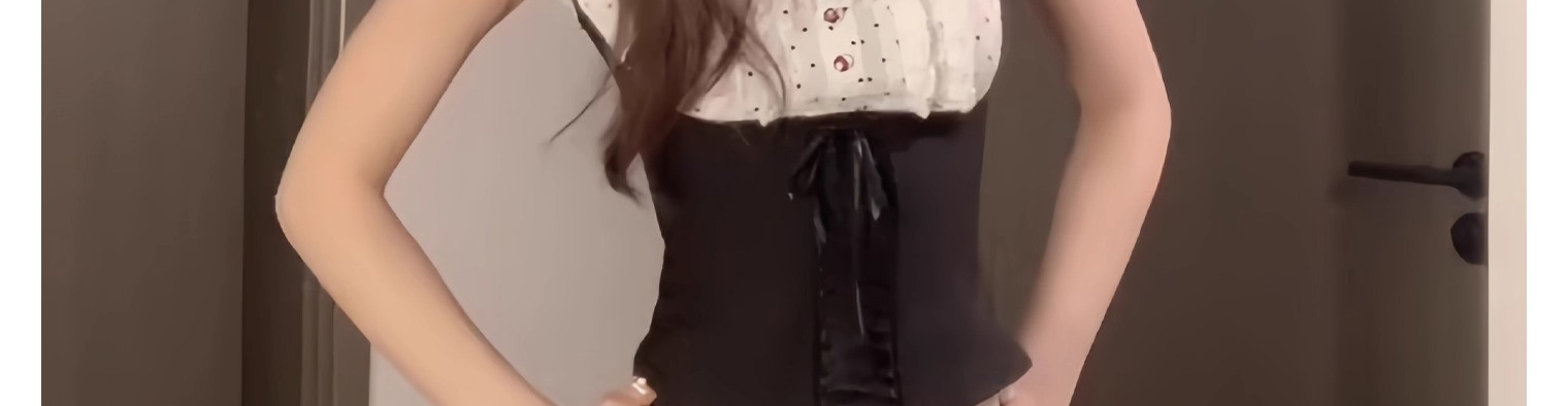 - Top: One-shoulder T-shirt with dot pattern and patchwork, two-way wear, slim fit.