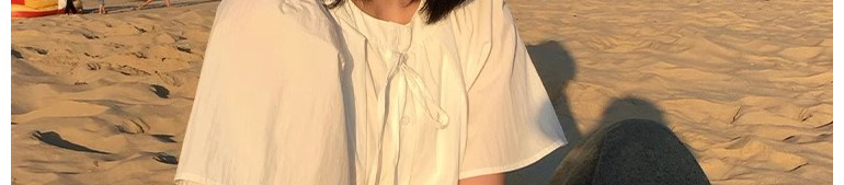 - Top: Short sleeve T-shirt with round neck and bow tie, loose fit, French sweet chic style.