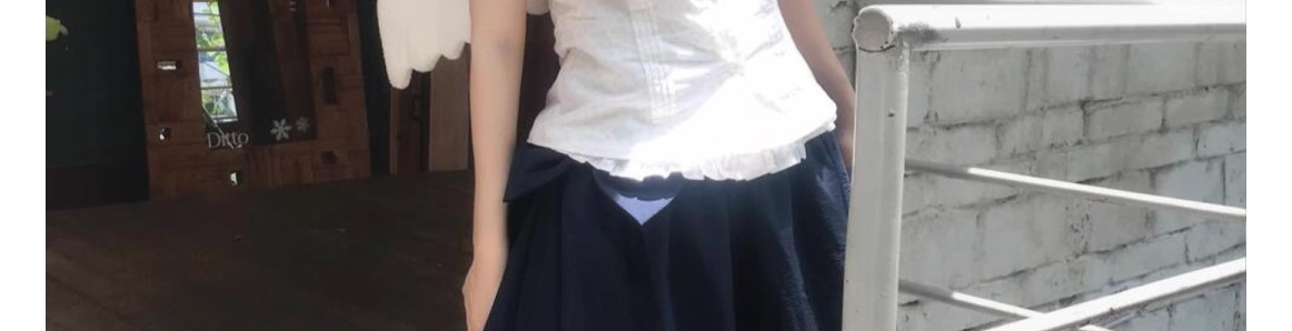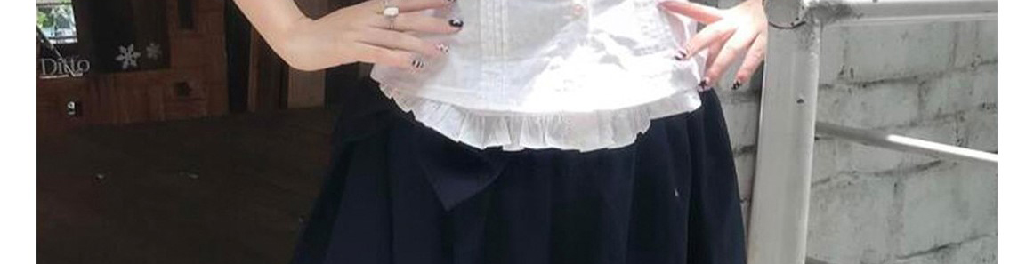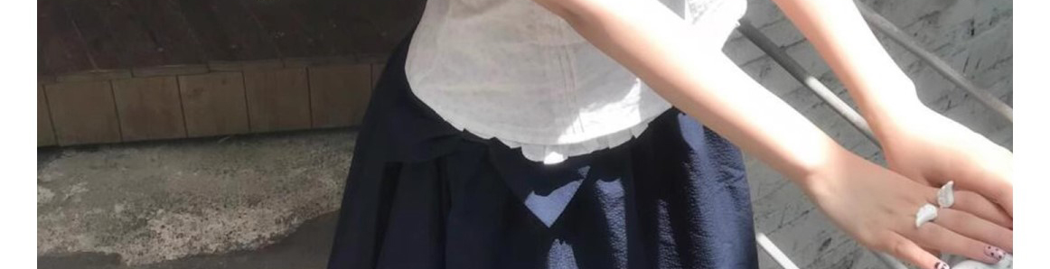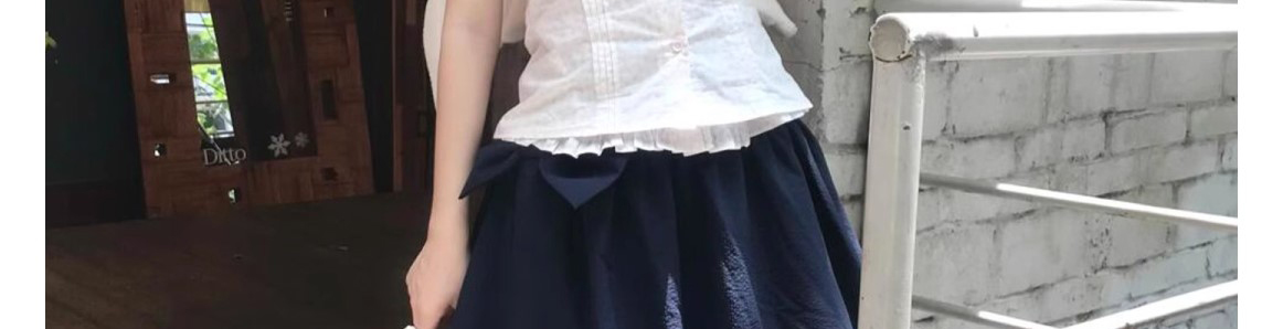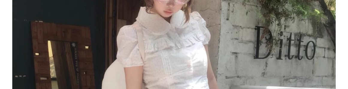 - Top: Romantic French-style short blouse with doll collar, lace-trimmed edges, and a flattering fitted cut.