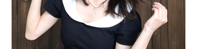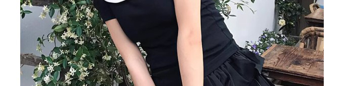 - Top: Slim-fit short sleeve tee with doll collar, straight shoulder, and soft cotton fabric.
