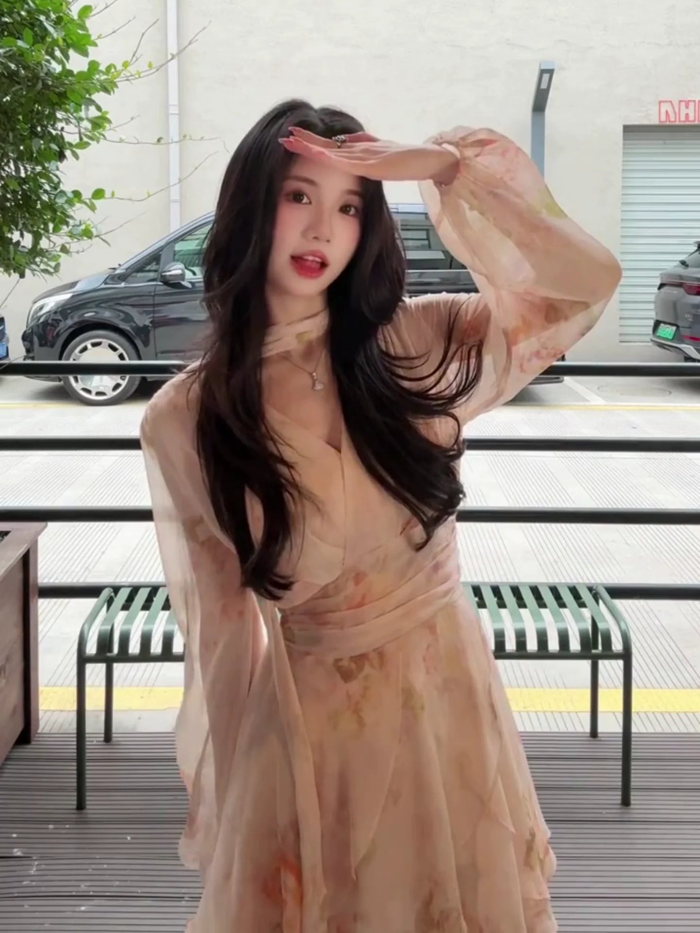 - Dress: A cute early autumn French dress with flowy chiffon fabric, V-neck, removable sash, long sleeves, and an A-line mini skirt. Super elegant and "" (pretty)—easy to style.