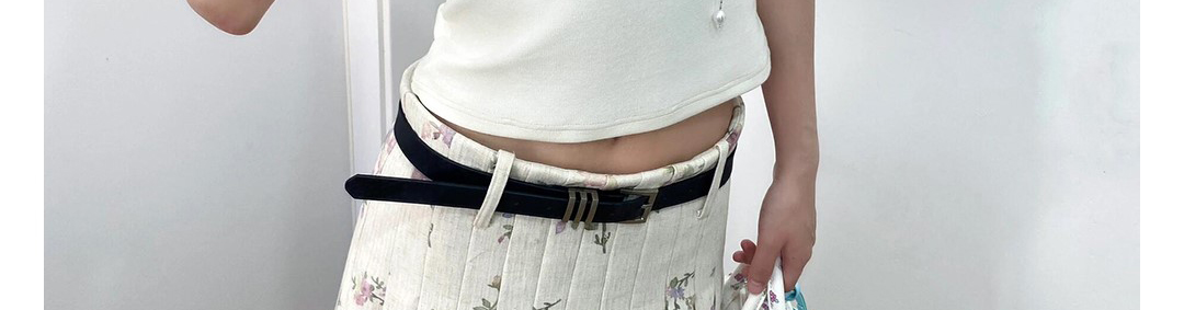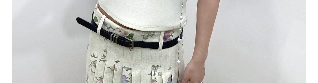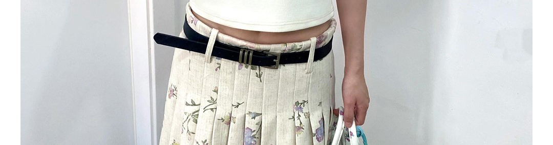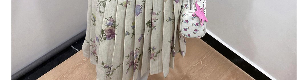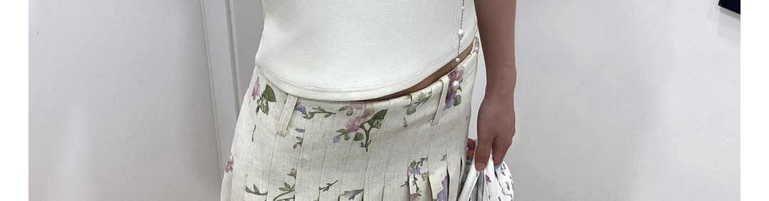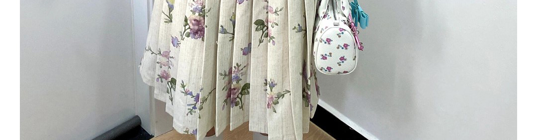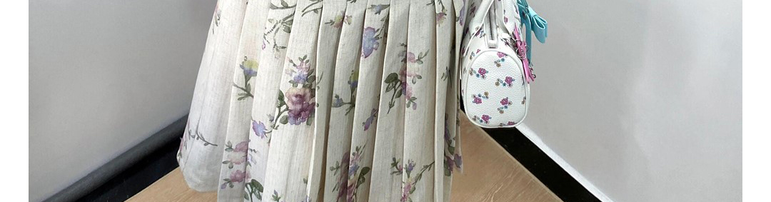 - Bottom: Pleated A-line skirt with floral print, soft breathable fabric, high-quality summer design.