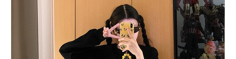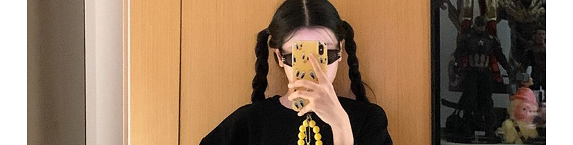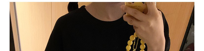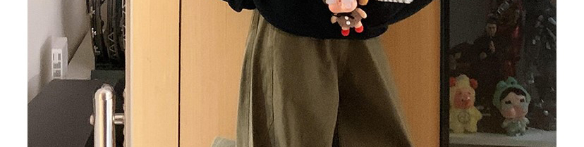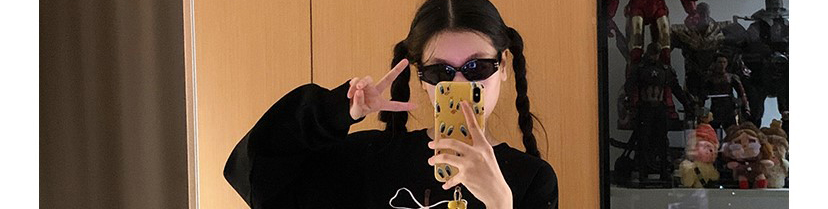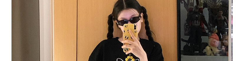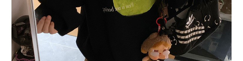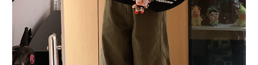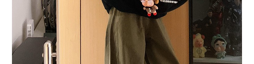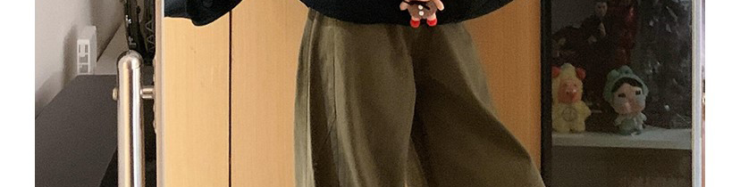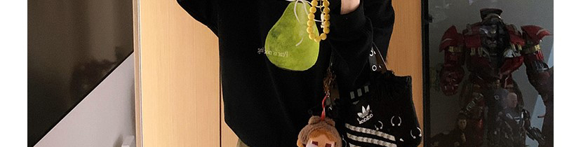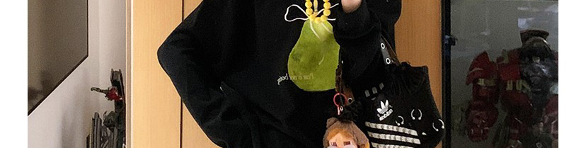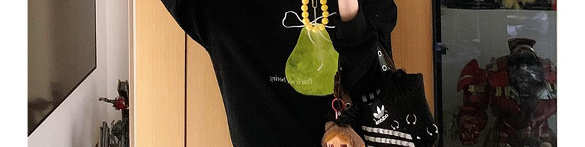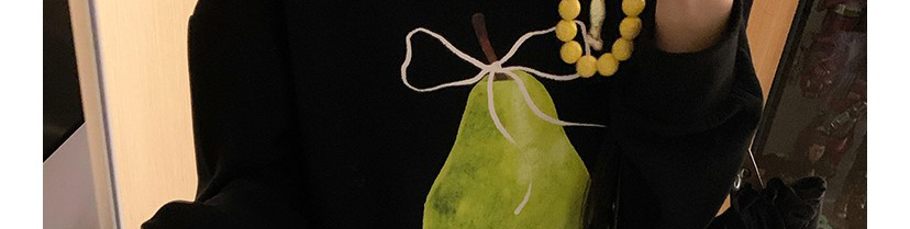 - Top: Round-neck long sleeve T-shirt with colorful fruit print, relaxed fit, breathable cotton.
