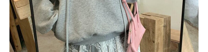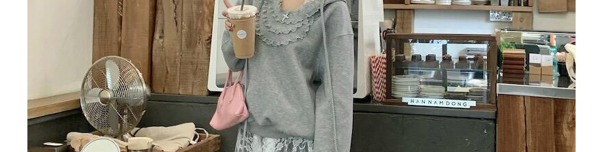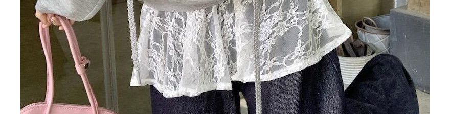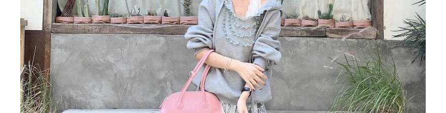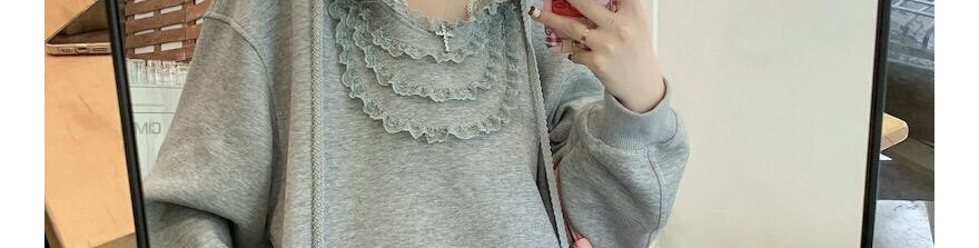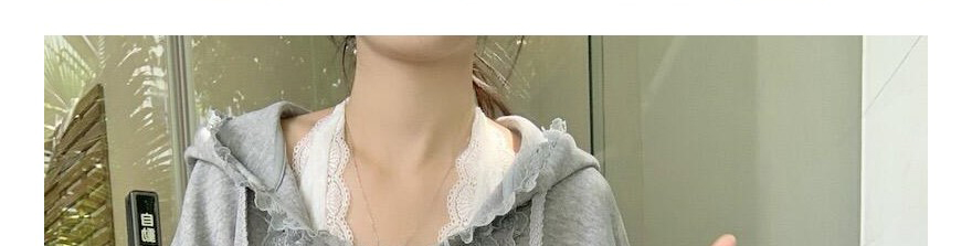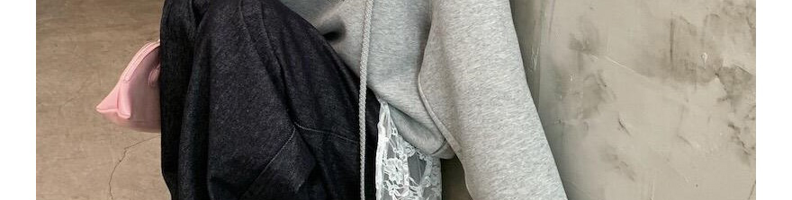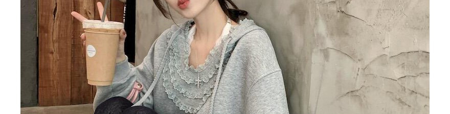 - Hoodie: Cozy gray hoodie featuring ruffle neckline details, long sleeves, and loose-fit comfort.
