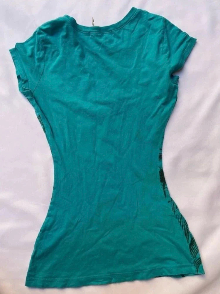 - Top: Green short-sleeve T-shirt with American retro vintage cross prints, embodying Abi subculture and punk spirit. Bold color and classic graphic for edgy summer styling.