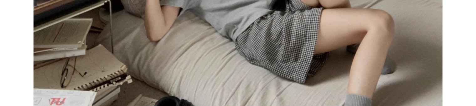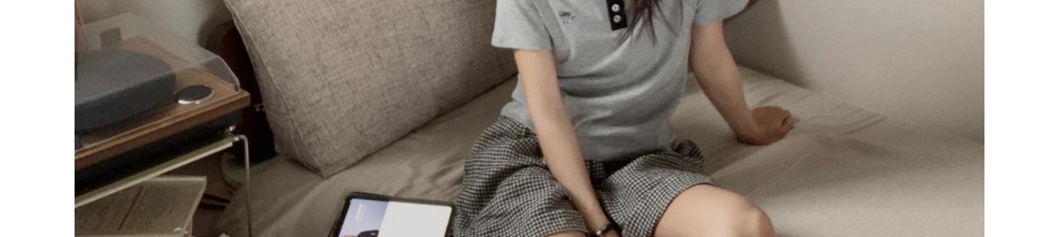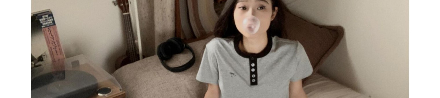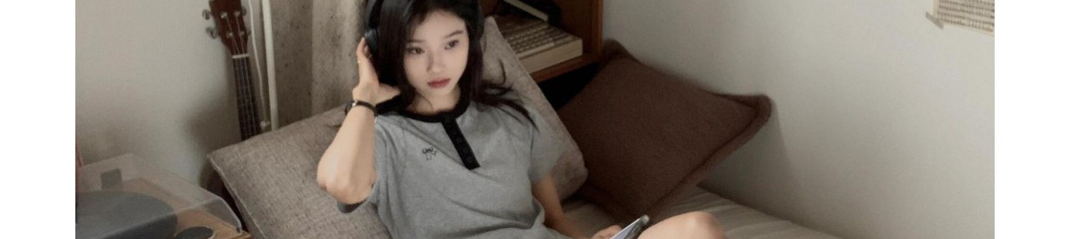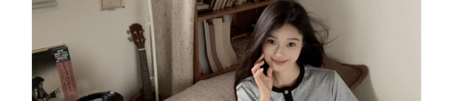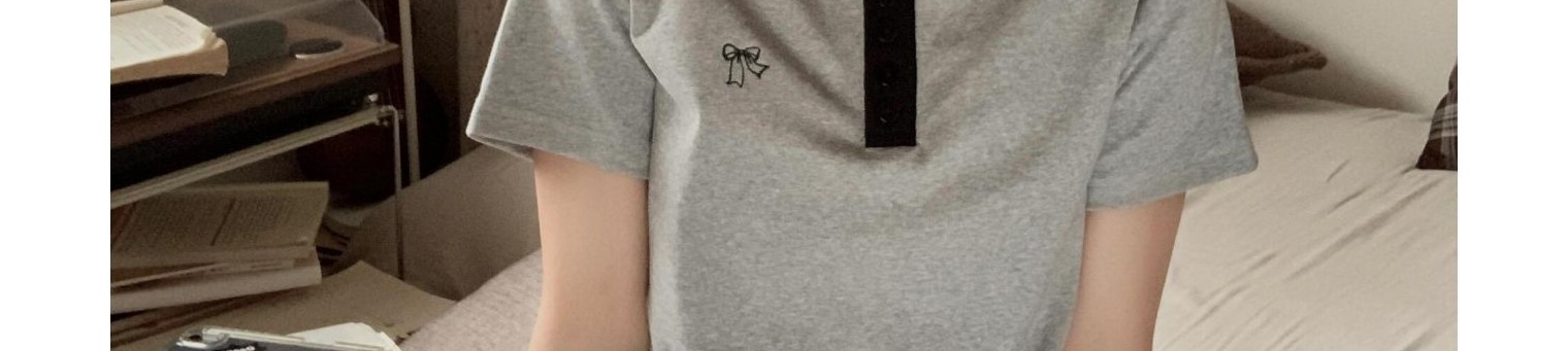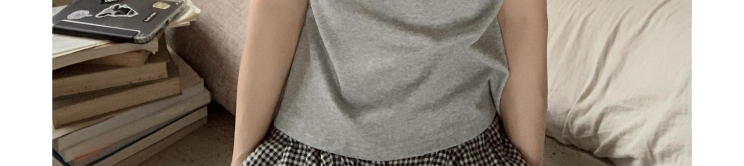 - Top: Grey short-sleeve cropped tee with colorblock design, slim fit for versatile styling.