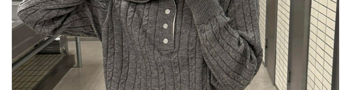 Grey layered knit sweater with loose silhouette. Simple and versatile, perfect for relaxed autumn outfits.