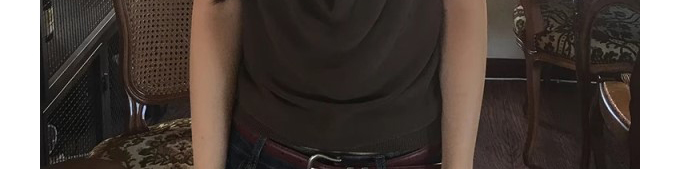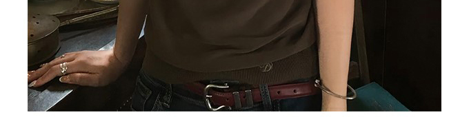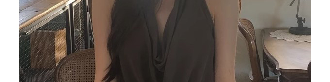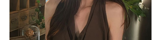 - Top: Sultry halter cami with draped neckline and open-back design, made from silky stretch fabric.
