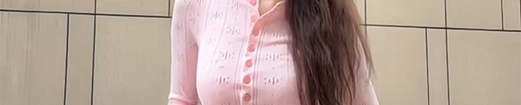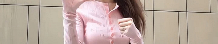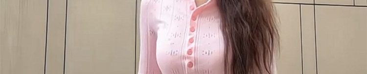 Henley collar knit top with hollow-out detail. Slim fit, chic early autumn spicy girl look.