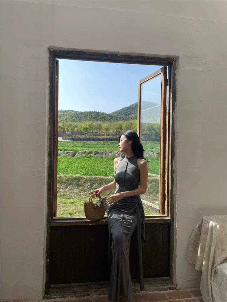 - Dress: Long gray modal tank dress with a high-end finish, featuring a fake two-piece design, a bodycon fit, and soft modal fabric—crafted for minimalist elegance and summer versatility.