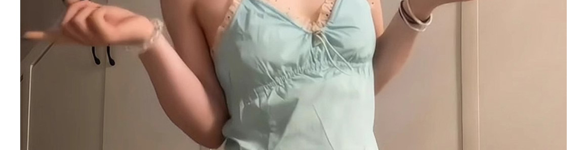 - Top: V-neck adjustable halter with polka dot and lace trim, slim fit, summer vacation style.