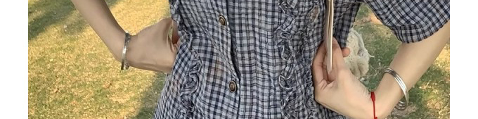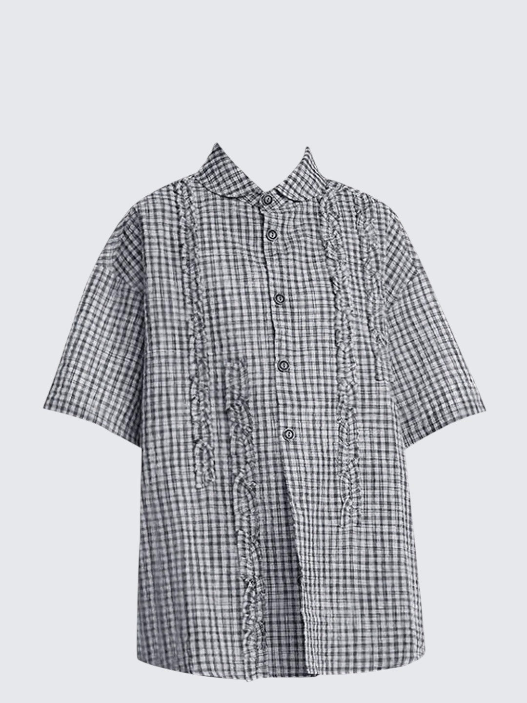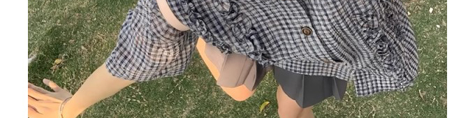- Outerwear: Long sleeve bubble gauze shirt with ruffle and Peter Pan collar, loose fit, trendy Japanese style.