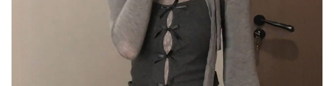 - Top: Slim-fit layered long-sleeve tee with bow tie detail, soft cotton blend, pastel color options.