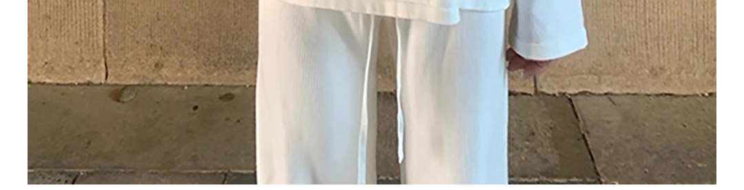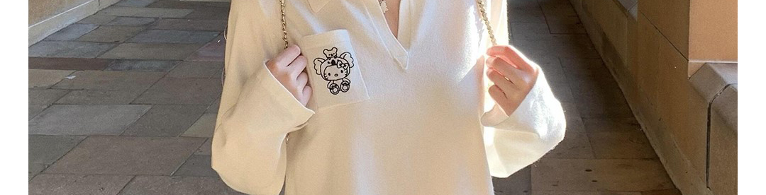 - Top: Loose-fit knit long sleeve tee with collared neckline, soft autumn fabric, preppy design.
