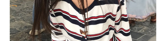 - Cardigan: Loose-fit long sleeve knit cardigan with colorblock stripes for a vintage Korean autumn look.
