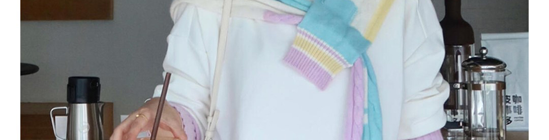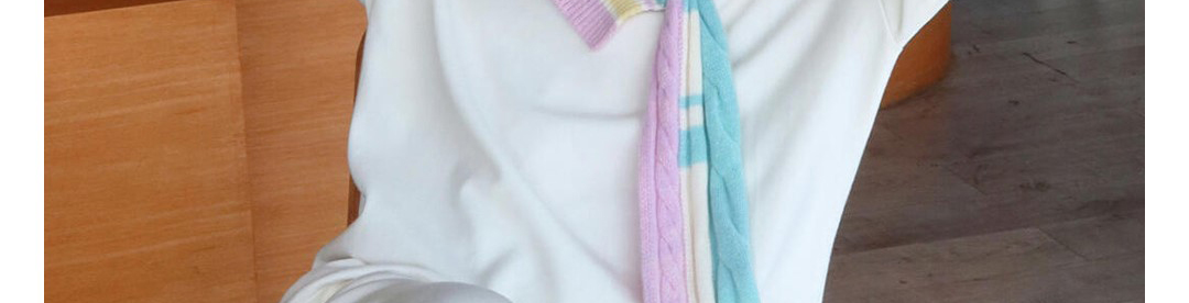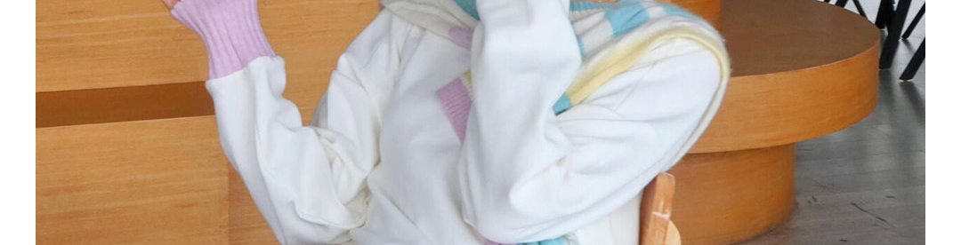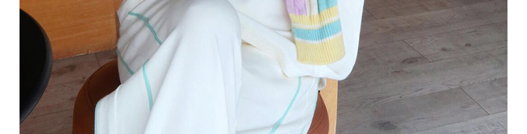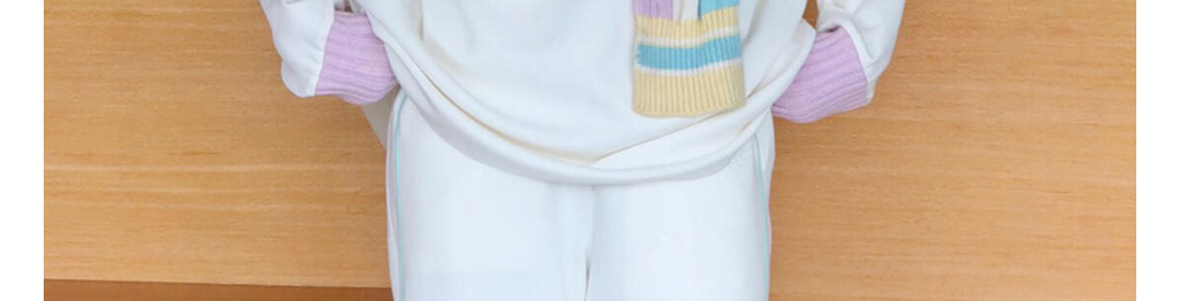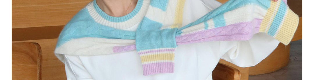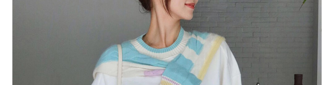 - Top: Loose fit knit sweatshirt with contrasting shoulder panel and soft fabric.