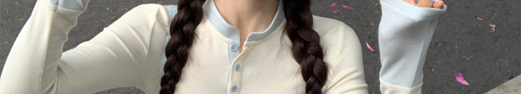 Korean Fake Two Piece Colorblock Henley T-shirt