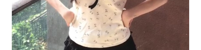 - Top: Floral square neck short sleeve T-shirt with butterfly knot, slim fit and breathable cotton.
