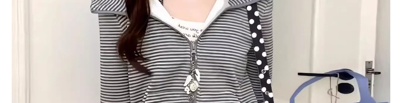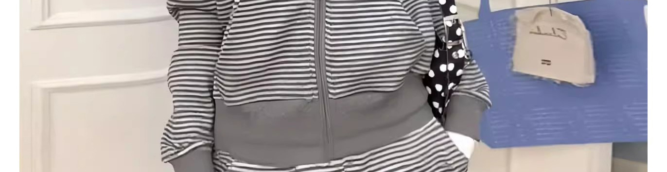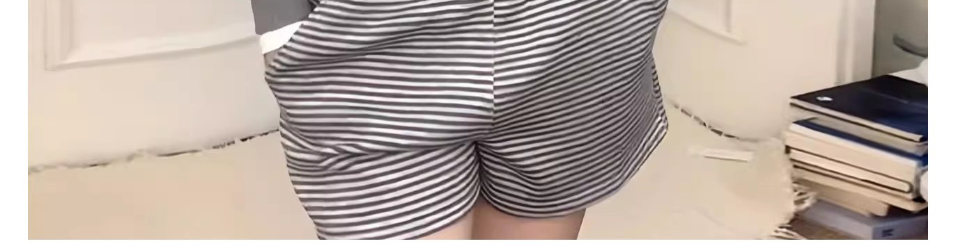 Gray striped hoodie and shorts loungewear set. Relaxed fit, casual and comfy for autumn.