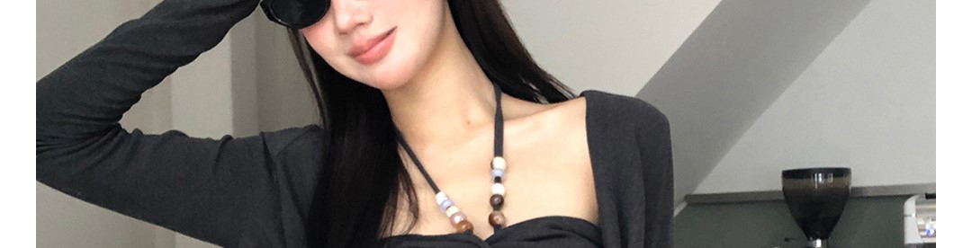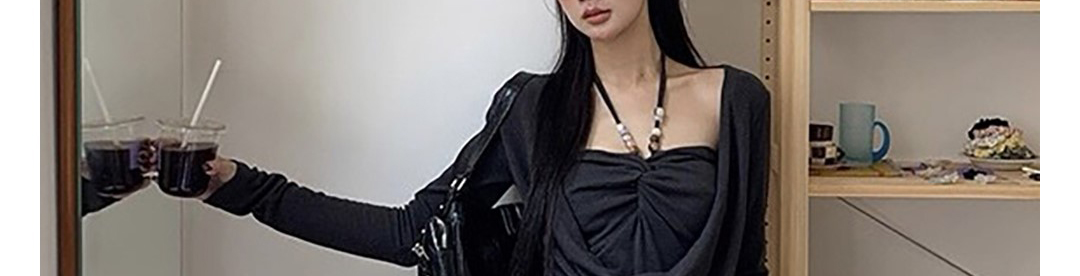 Trendy Korean halter two-piece top featuring a camisole and long sleeve tee combo. Slim fit and age-reducing design for a chic autumn look.