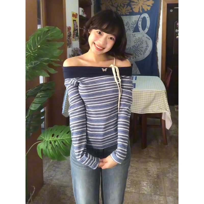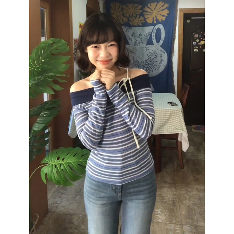 Korean Off-Shoulder Stripe Tee