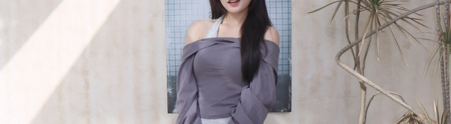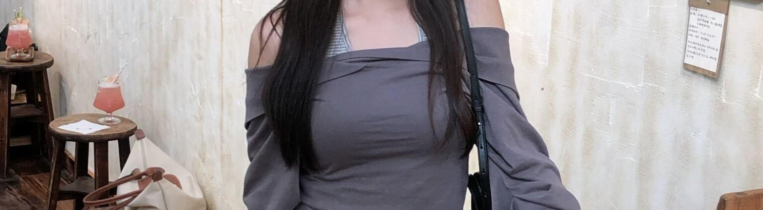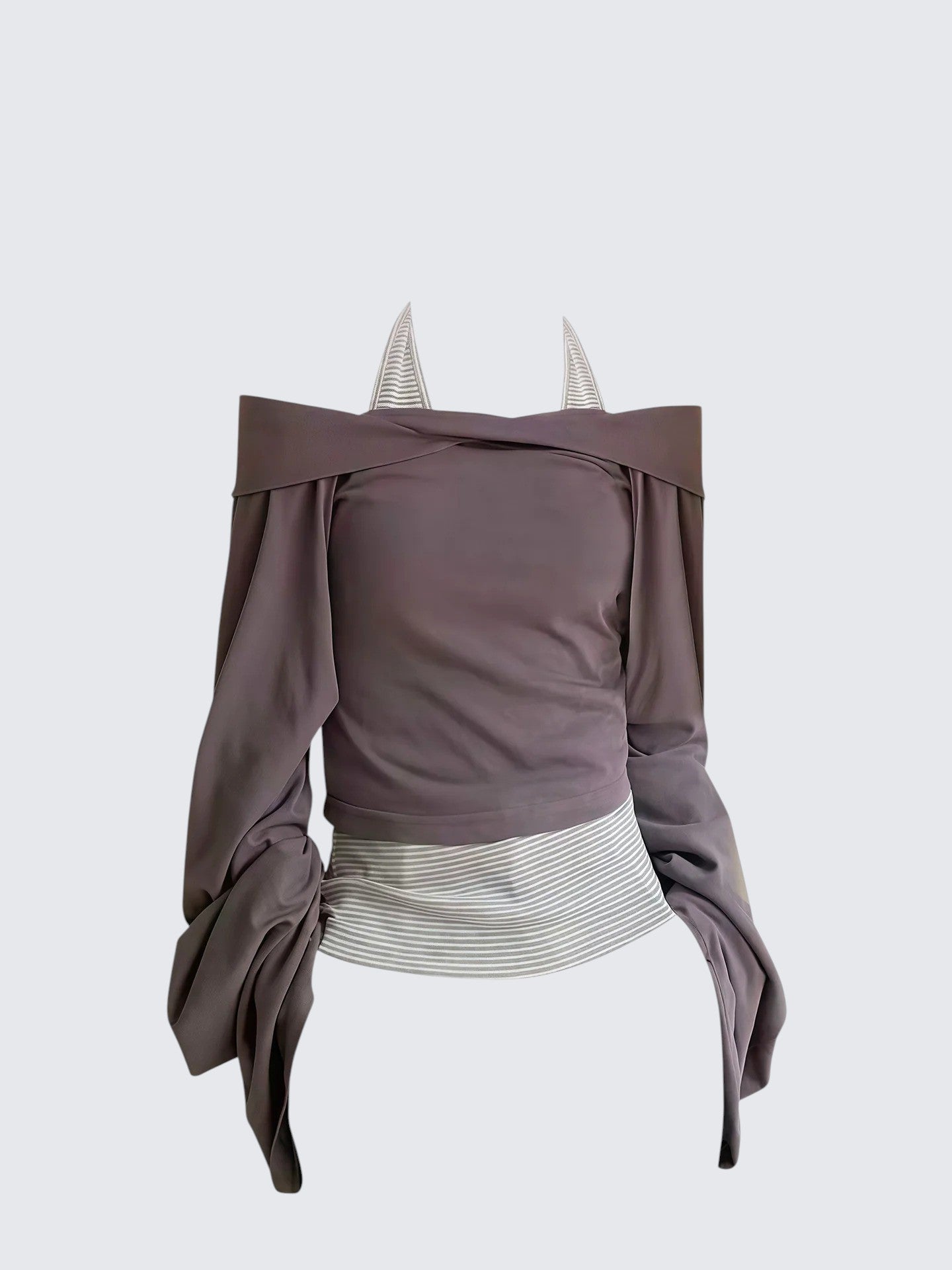 - Top: Slim-fit off-shoulder long sleeve tee with striped patchwork, soft autumn fabric, two-piece design.