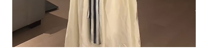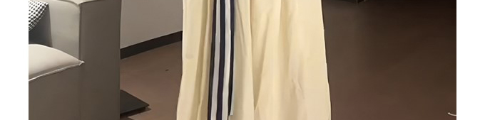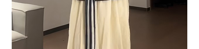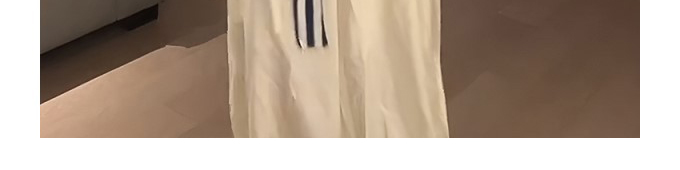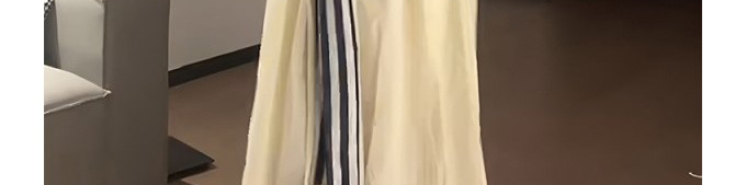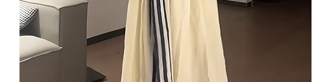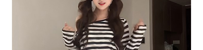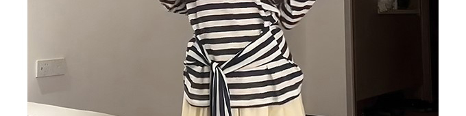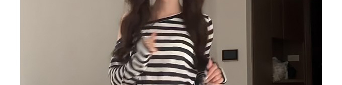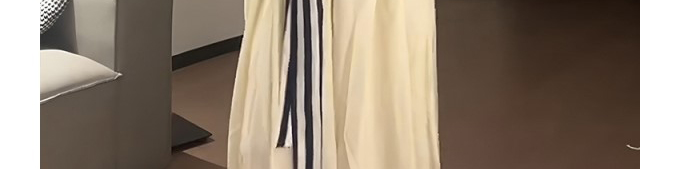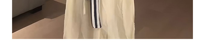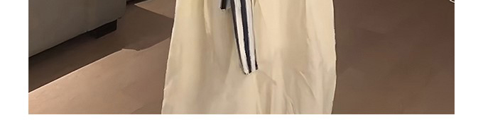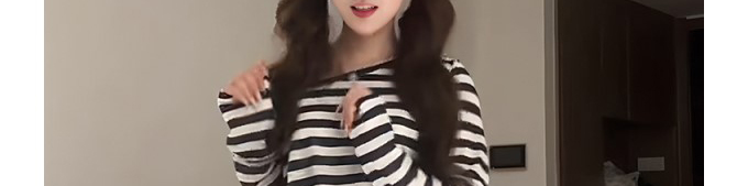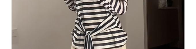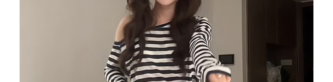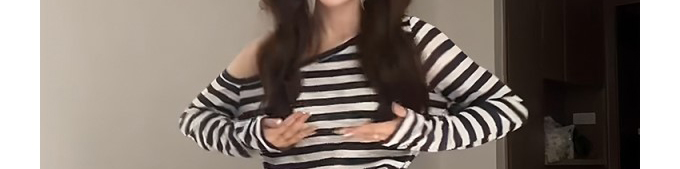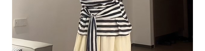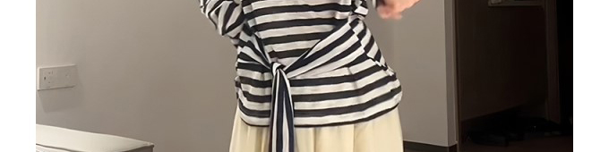 - Top: Loose-fit long sleeve tee with striped pattern, one-shoulder cut, and tie detail, soft early autumn fabric.