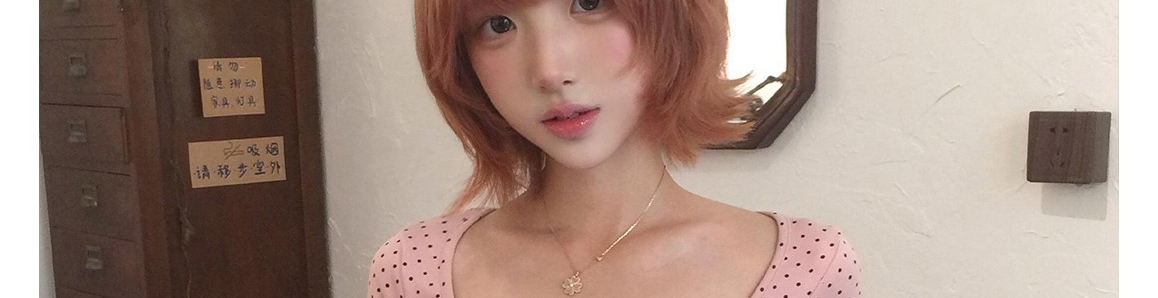 - Top: Pink polka dot V-neck short sleeve tie T-shirt with a fitted silhouette and playful Korean pure-desire style.
