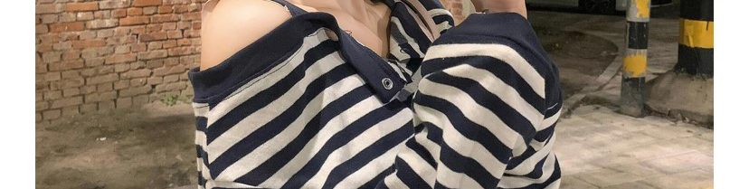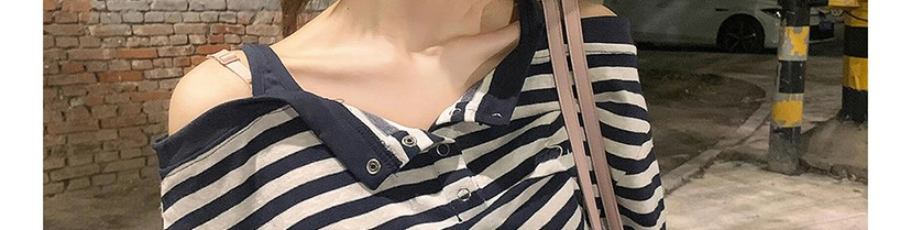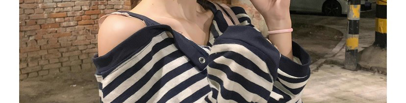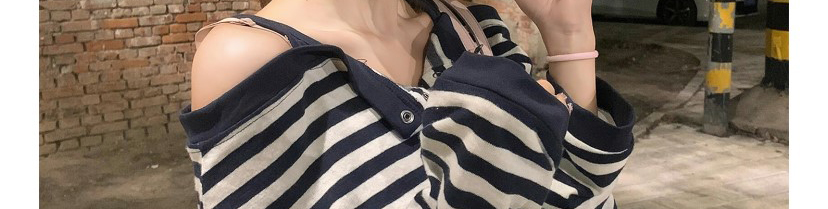 - Top: Loose-fit long sleeve T-shirt with stripes and off-shoulder design for a youthful autumn look.