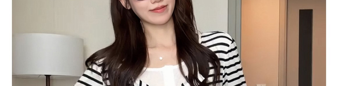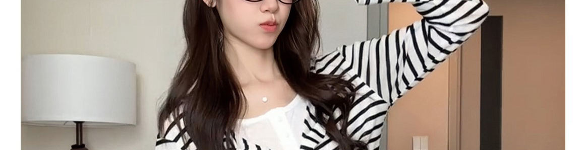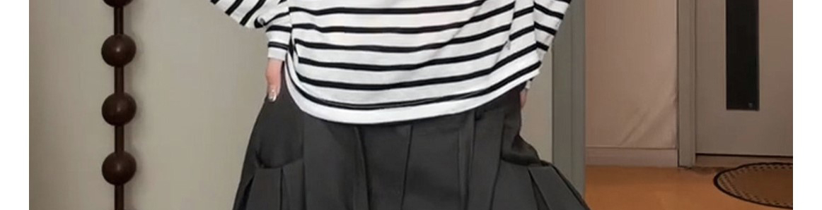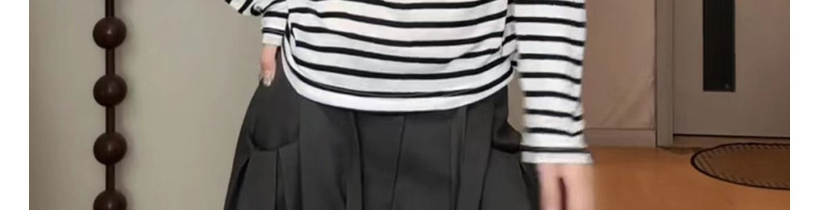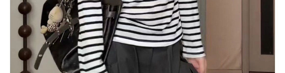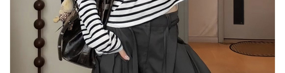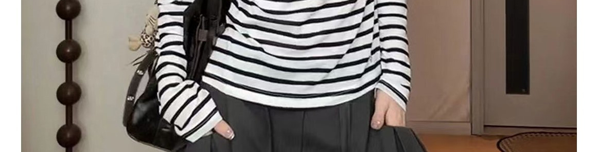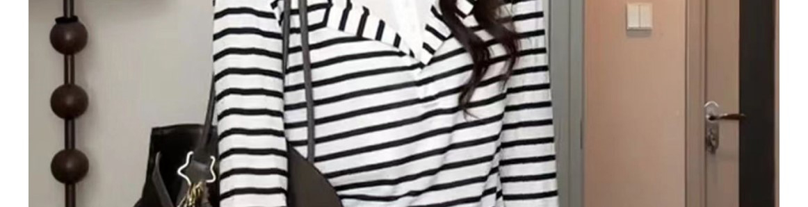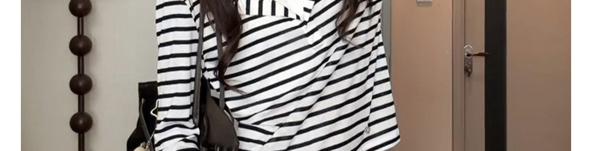 Trendy Korean-style V-neck striped tee featuring contrast color patchwork and slim-fit design. Perfect for autumn layering and daily streetwear looks.