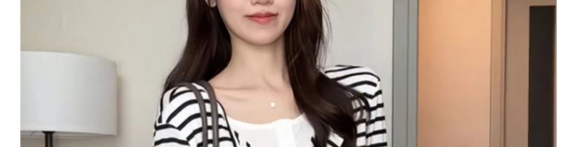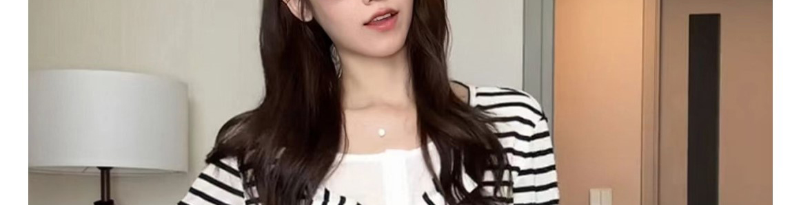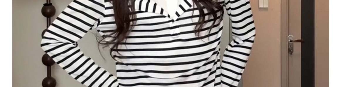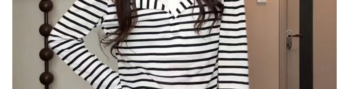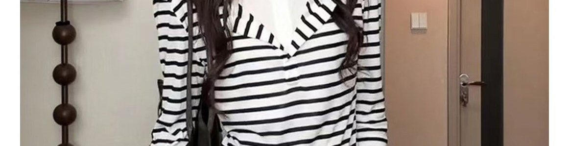 Korean Contrast V-Neck Striped Long Sleeve Tee Women Autumn Slim Fit