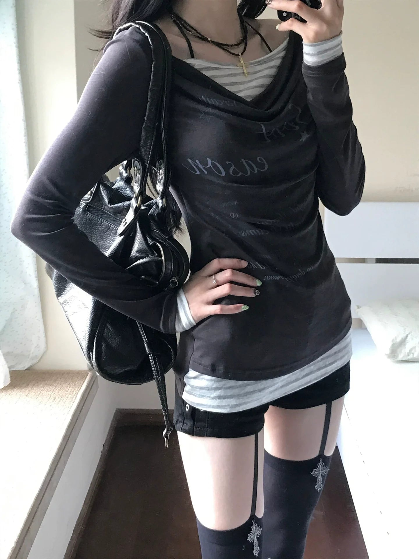 Korean Tencel Drape Neck Layered Tee Slim Fit Lightweight Sunproof Top