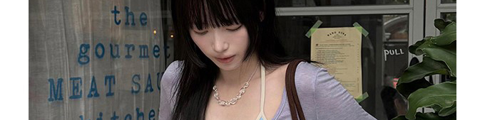 - Top: Lightweight two-piece set with halter neckline, sheer fabric, and long sleeve inner tee for a layered look.