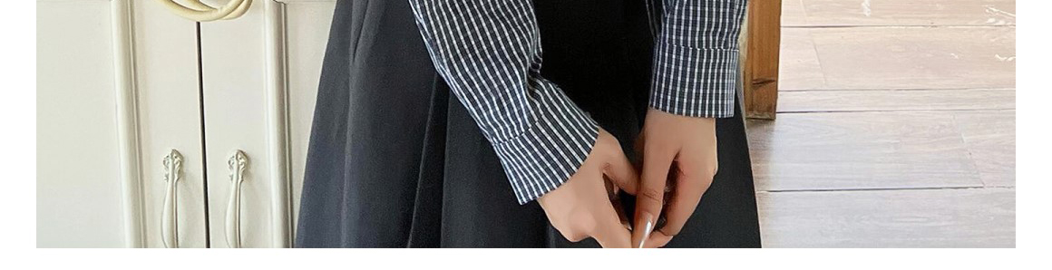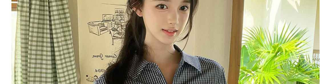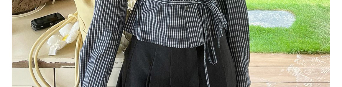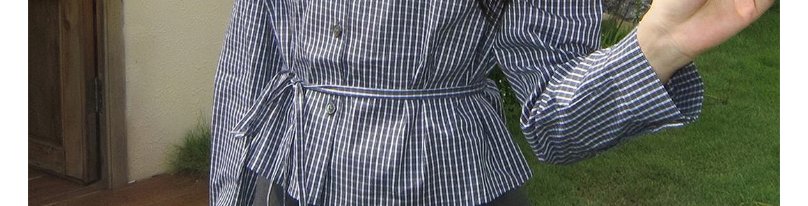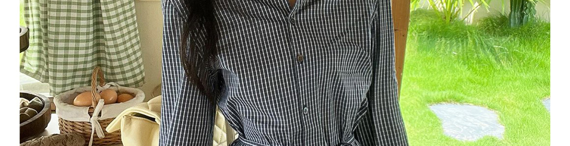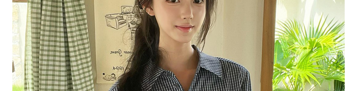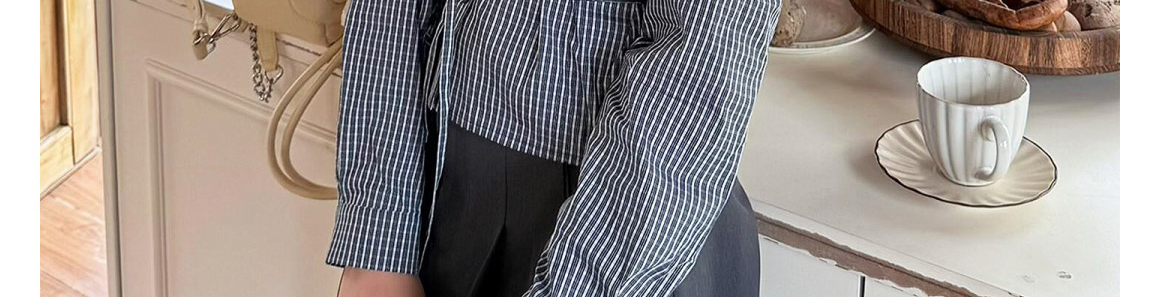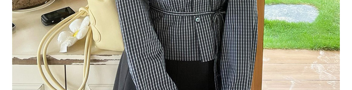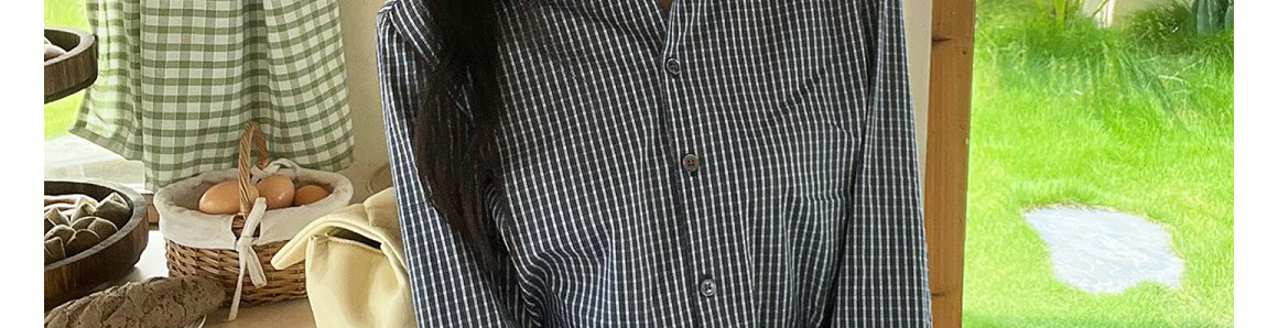 - Top: Slim-fit long sleeve shirt with plaid pattern and straight shoulder design, soft early autumn fabric.