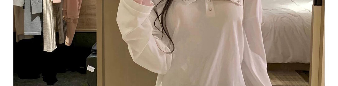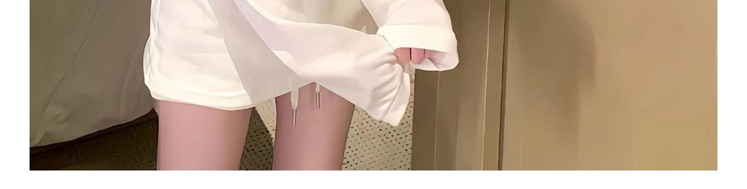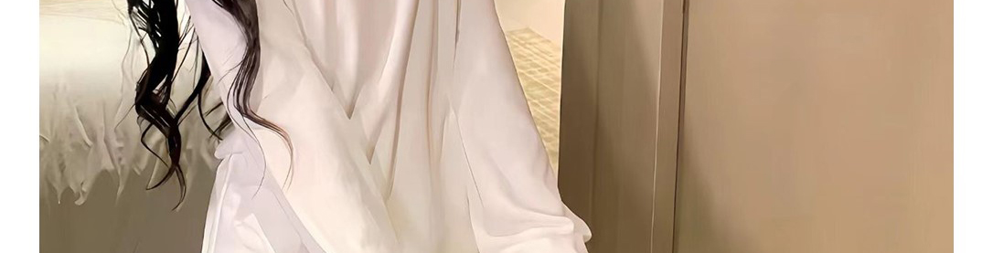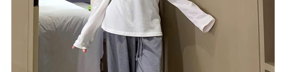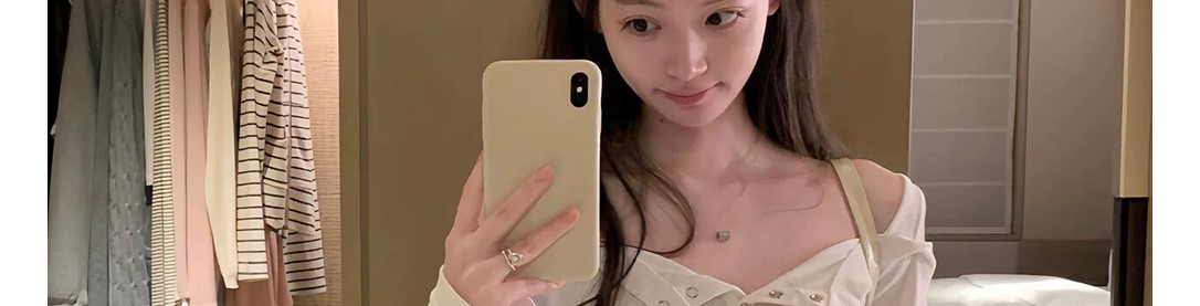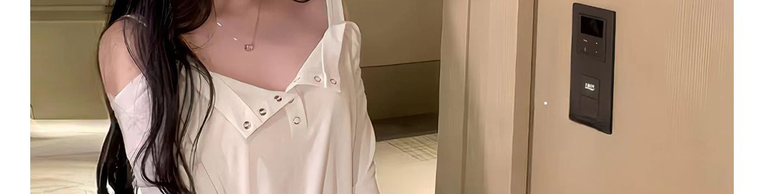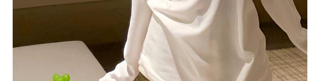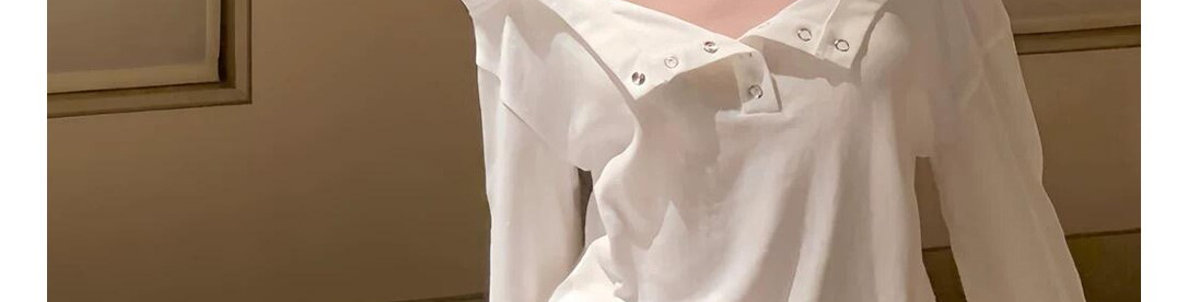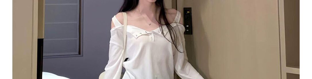 - Top: White one-shoulder long sleeve tee, textured fabric, relaxed fit, Korean aesthetic.