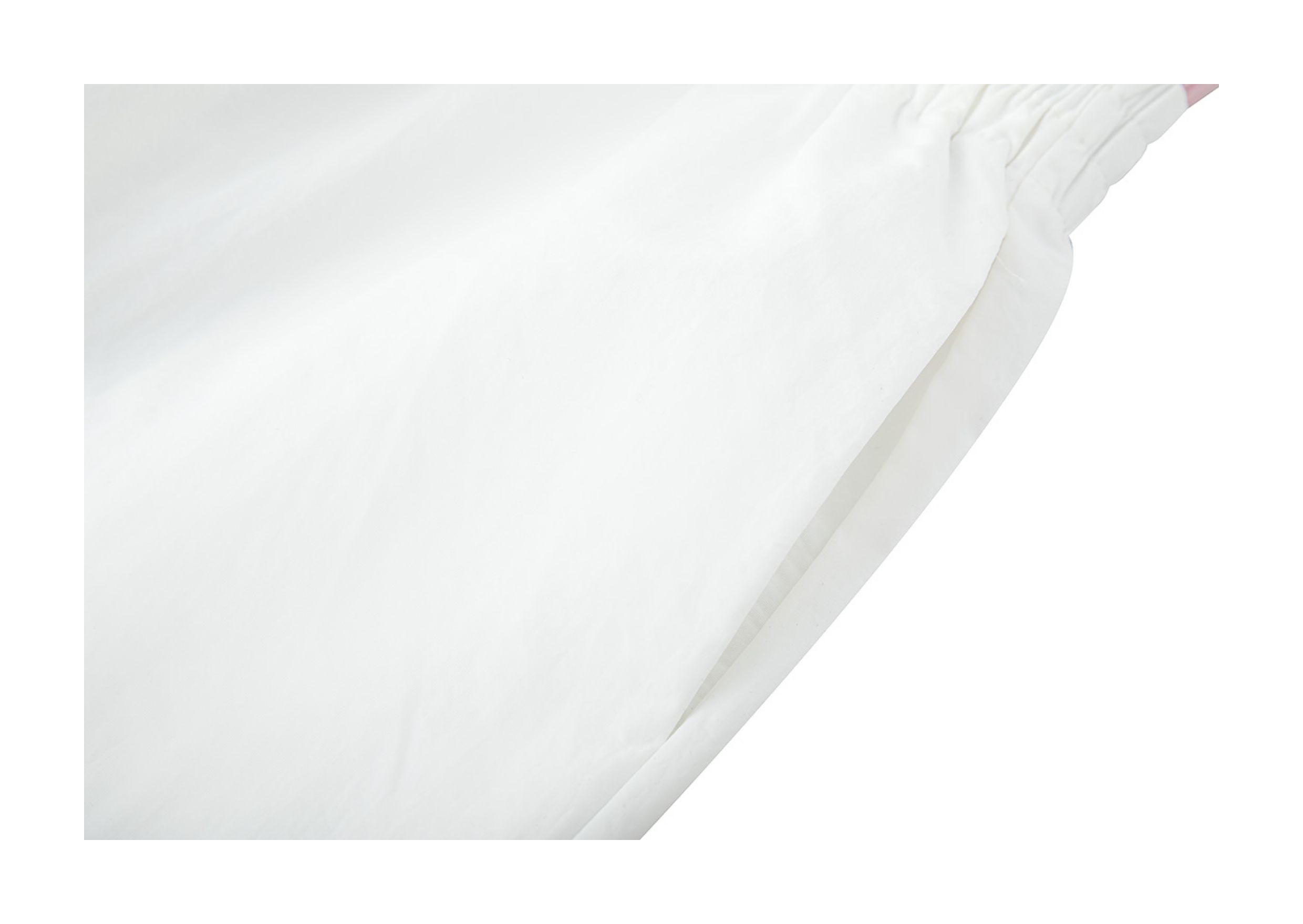 - Pants: Loose-fit straight-leg pants with colorblock layered design and elastic waistband, soft summer fabric.