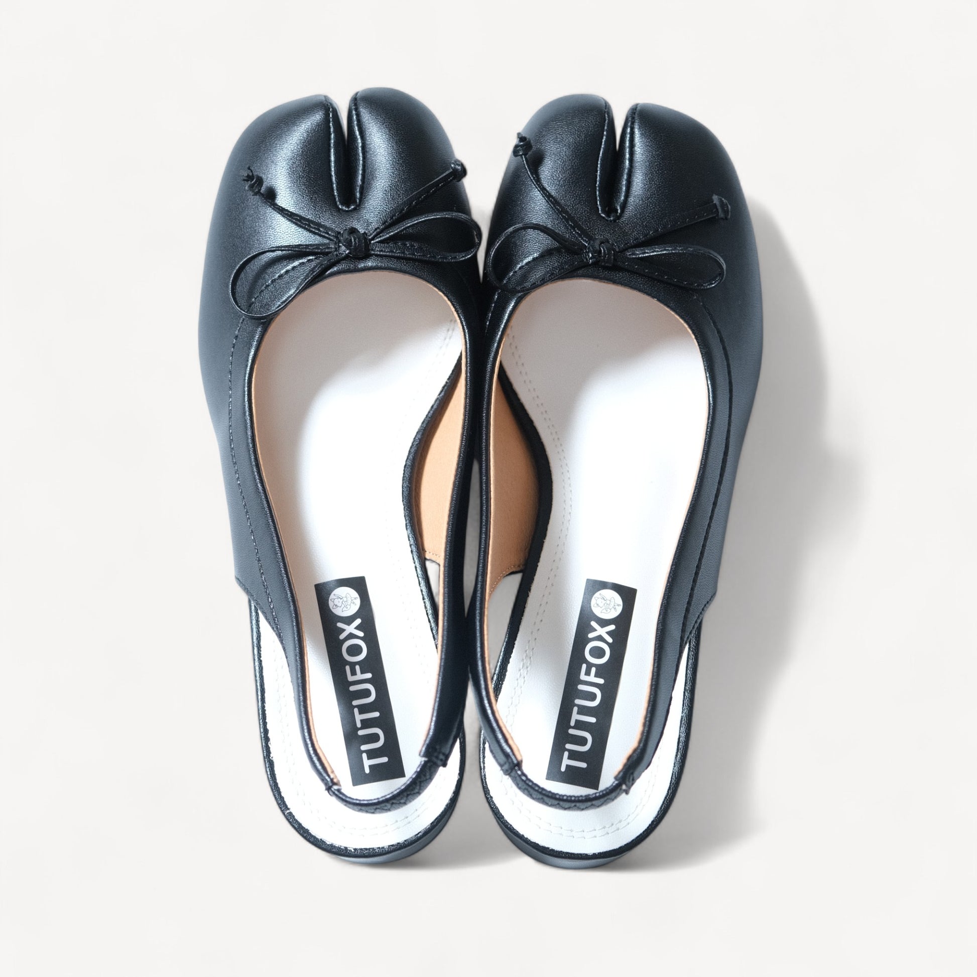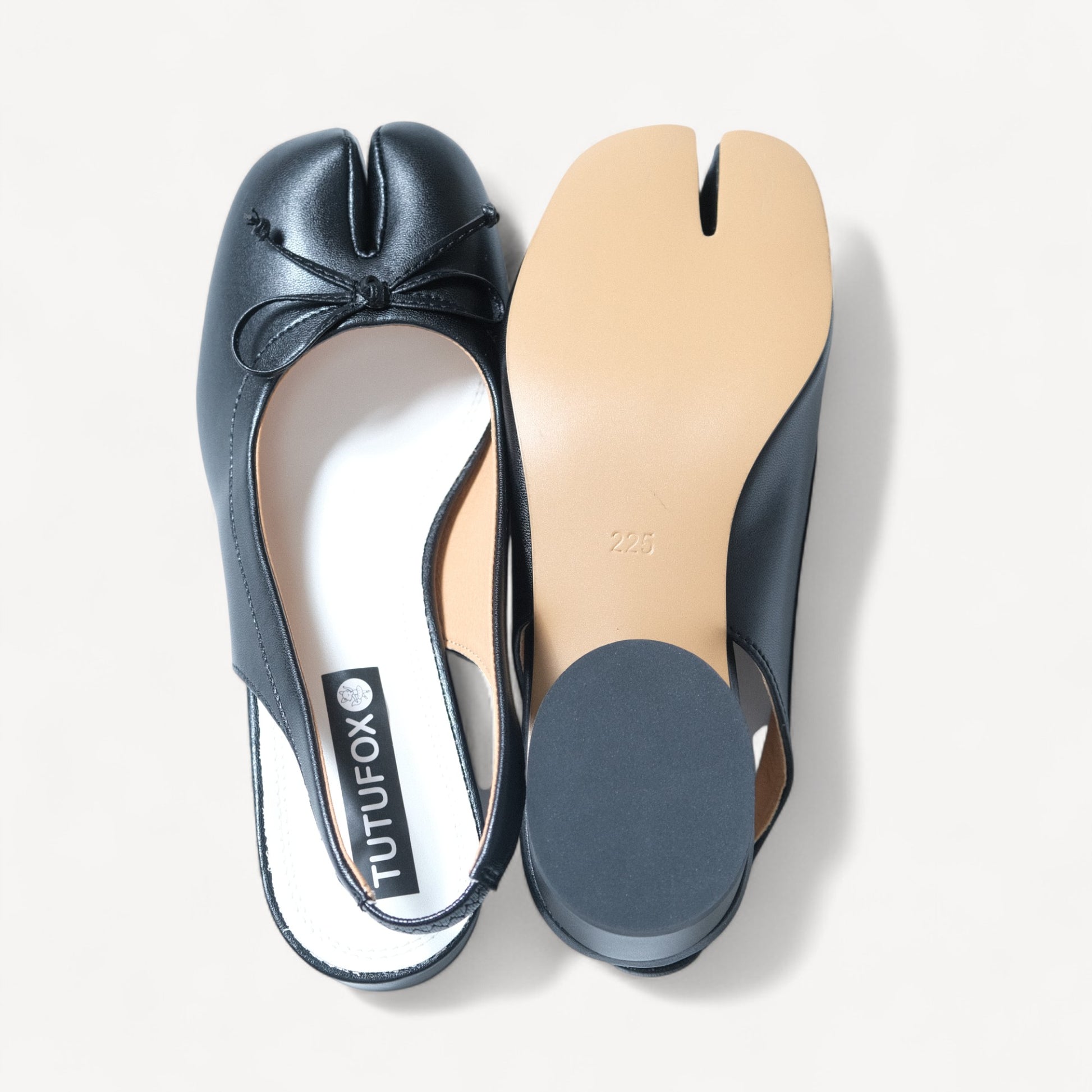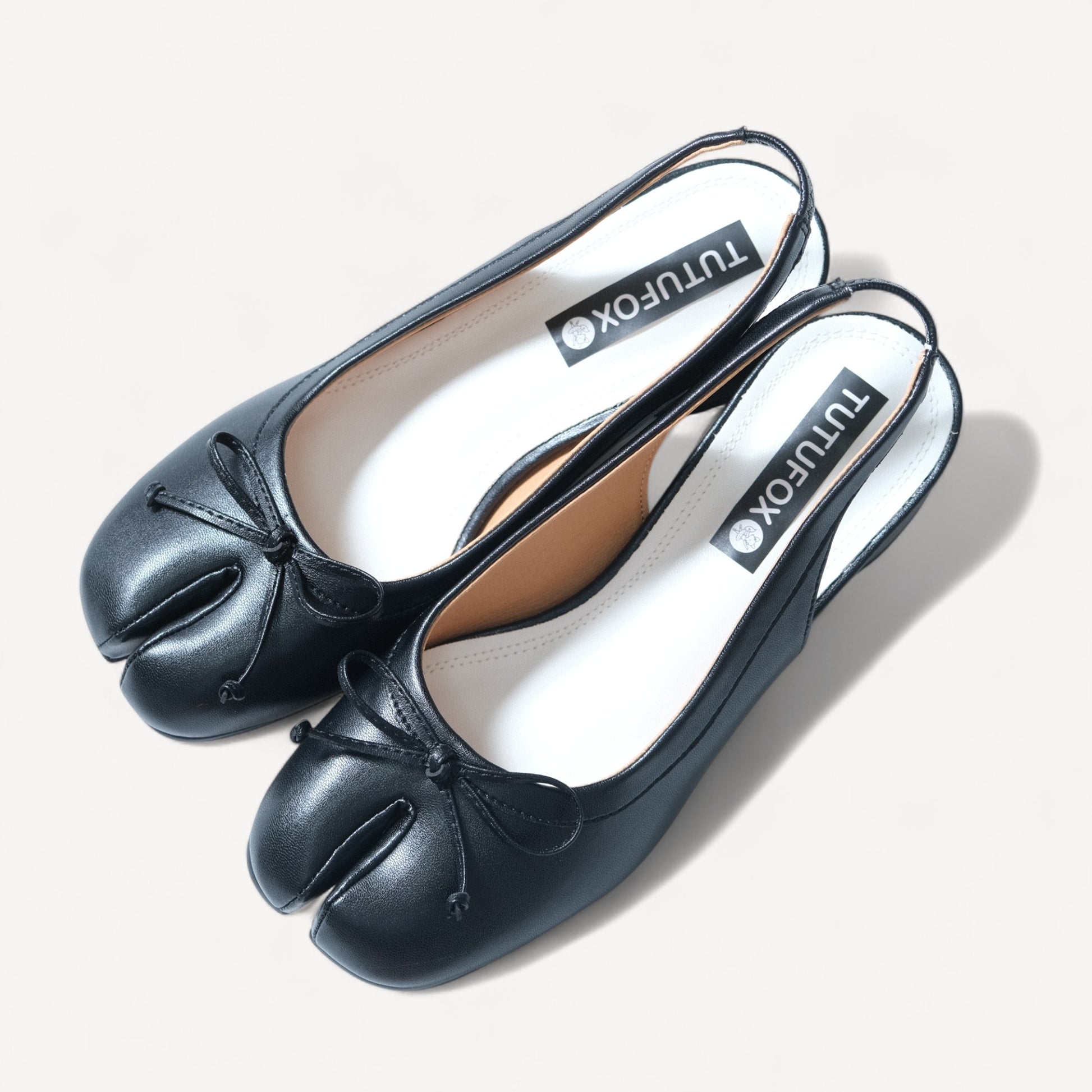 Leather Bow Round Heel Split-Toe Strap Tabi