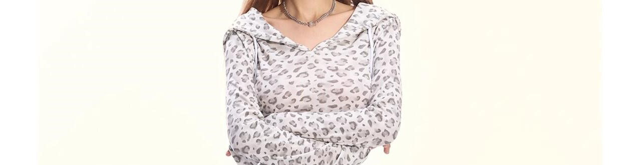 Leopard print hooded long sleeve tee. Slim fit, stylish and comfy for autumn casual wear.
