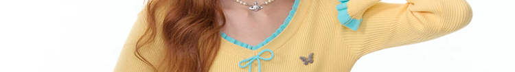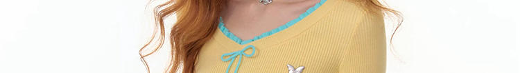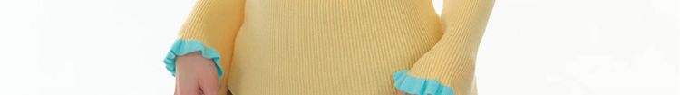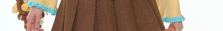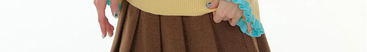 - Top: Slim-fit knit top with V-neck, ruffle bell sleeves, and soft autumn fabric for a cozy feel.