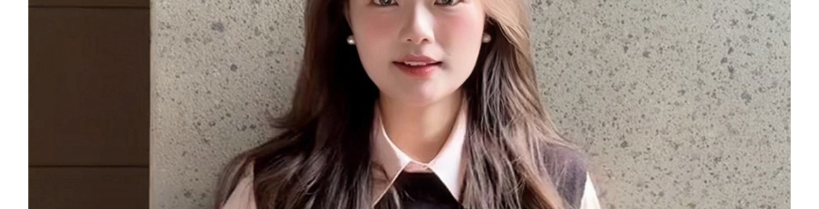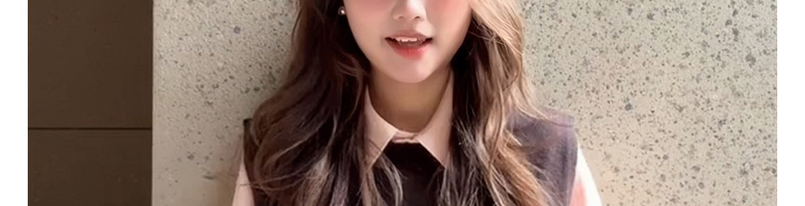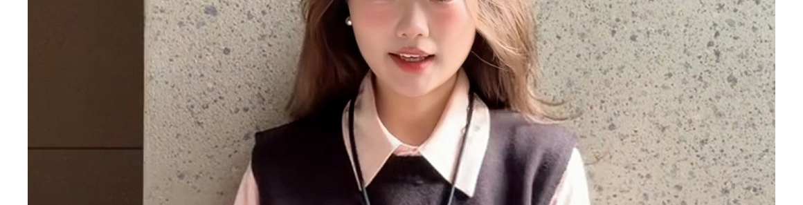 Mallard-style knit vest with long sleeve shirt. Stylish layered two-piece, youthful and chic for autumn.
