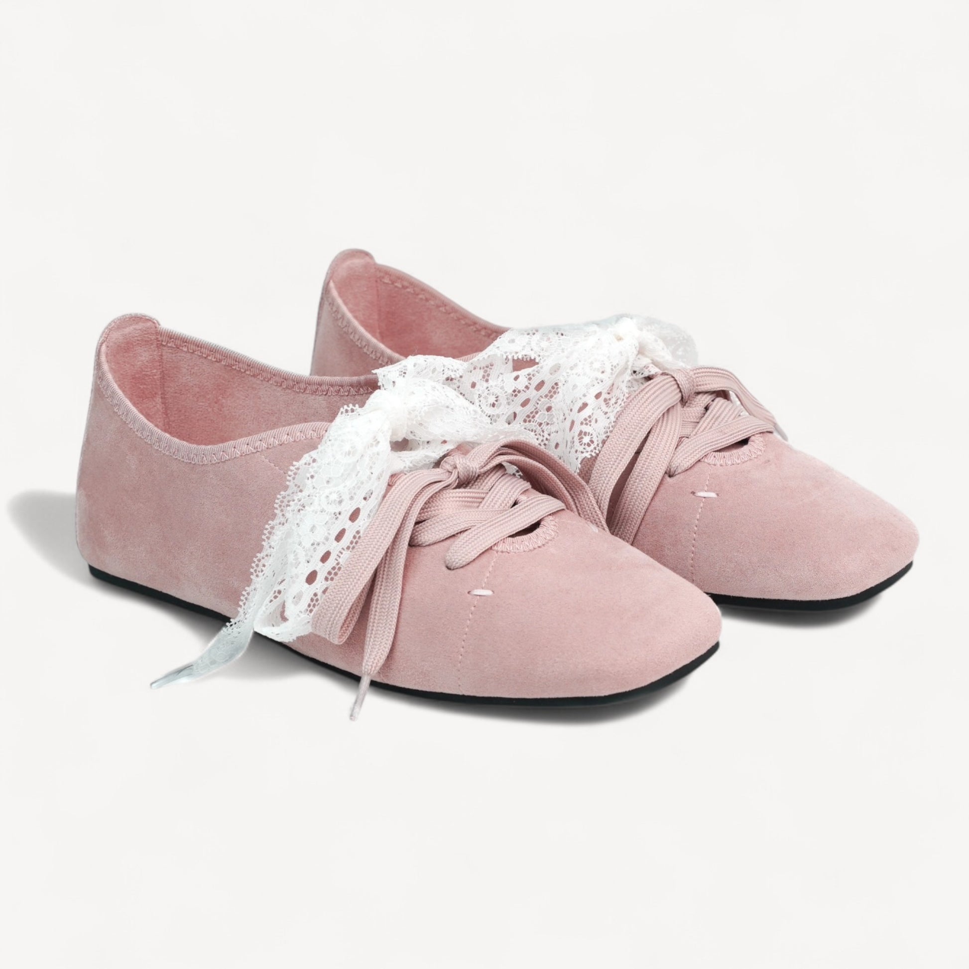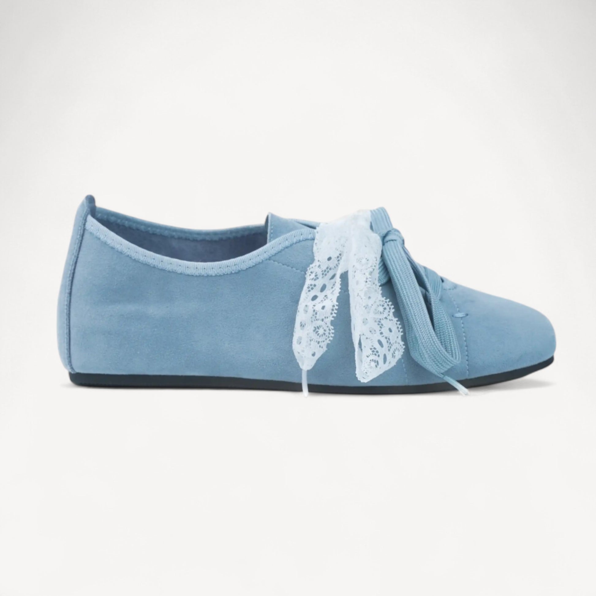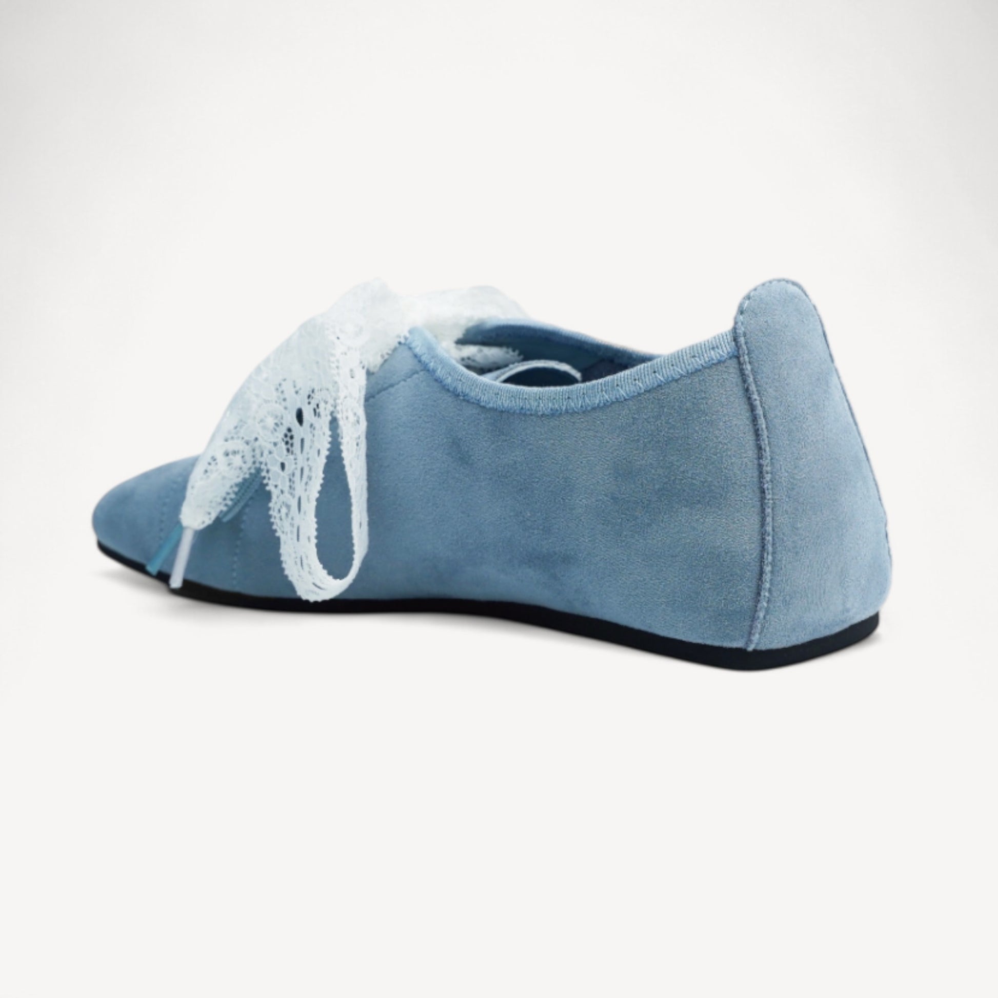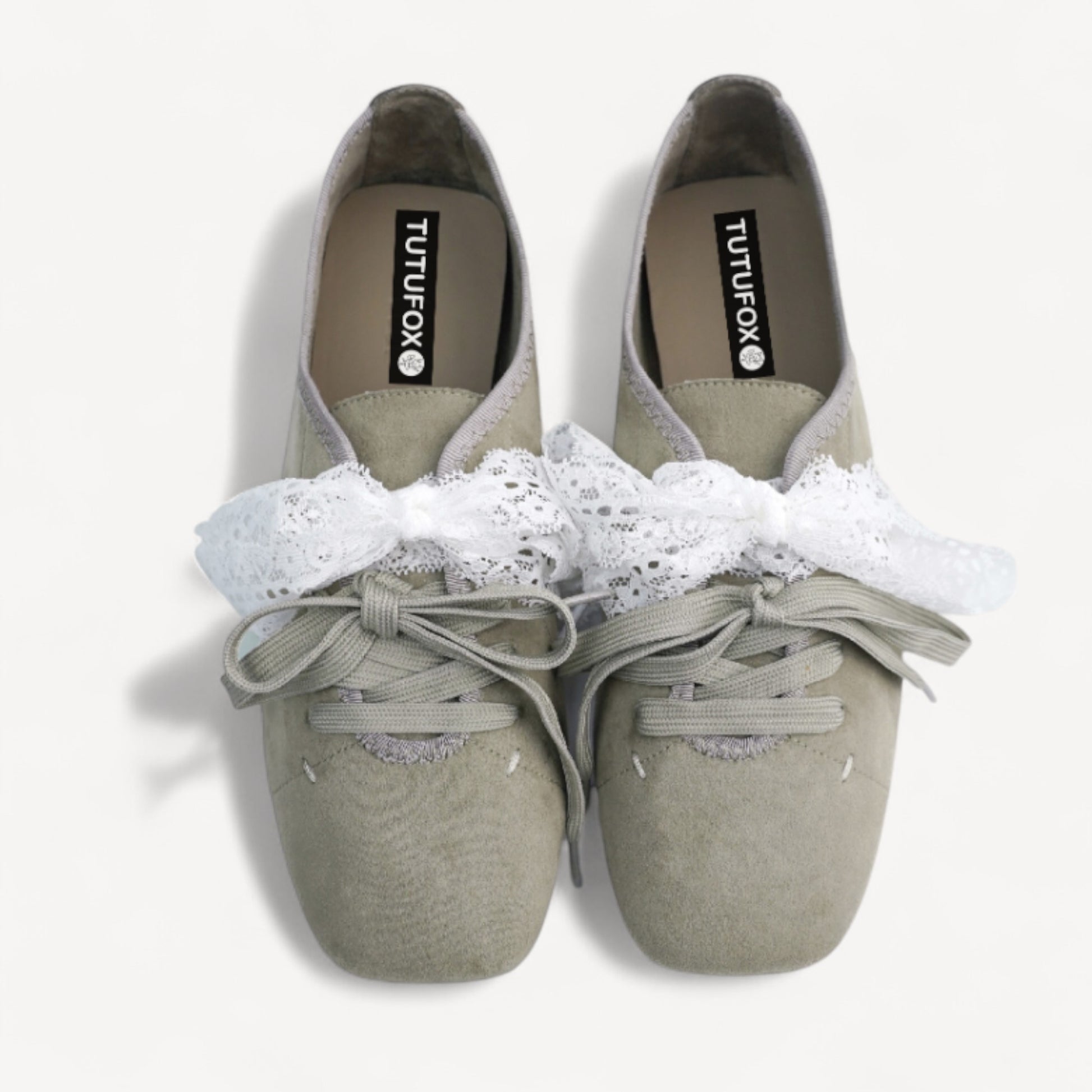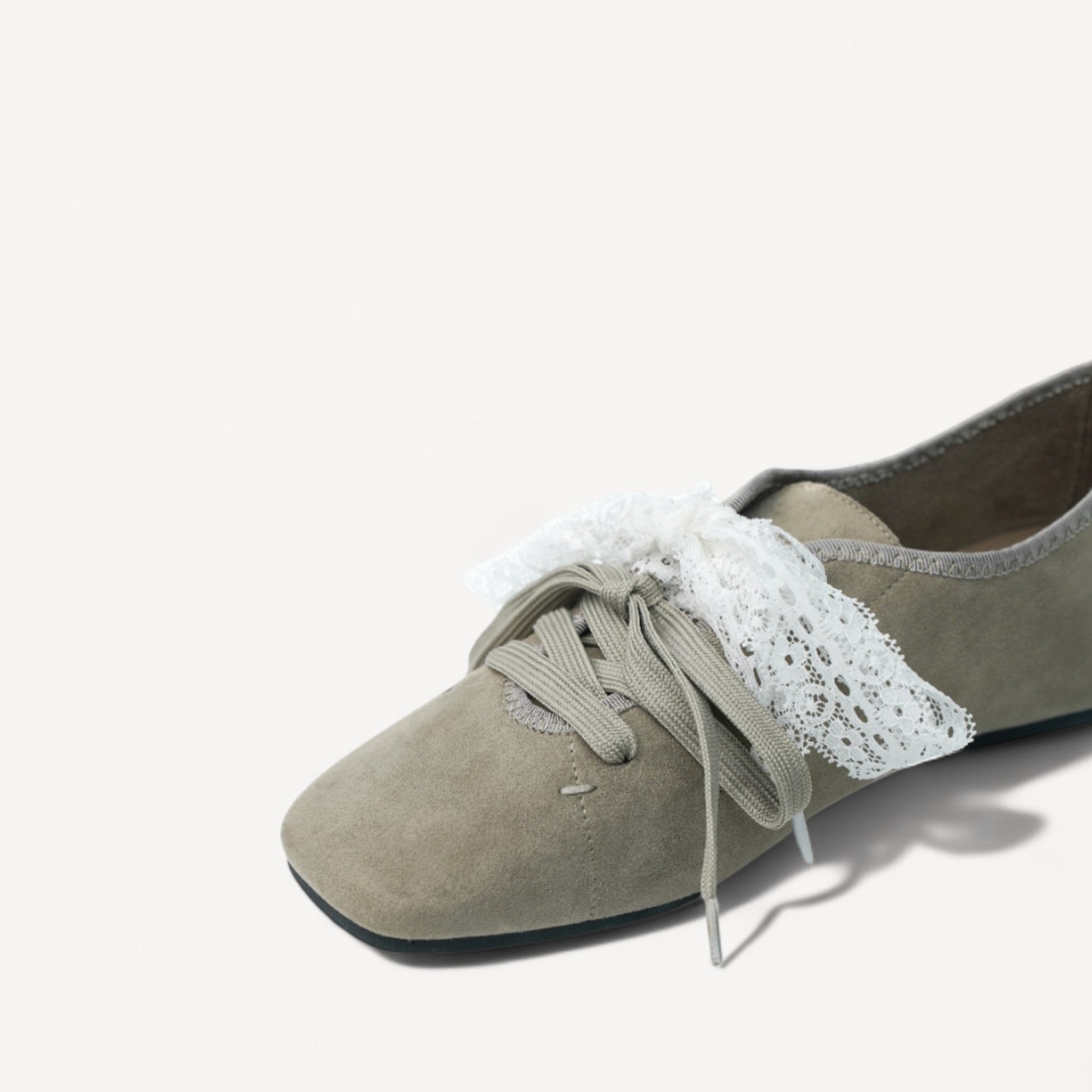 These matcha green suede ballet flats feature delicate lace straps, offering ballet-inspired grace with modern comfort. Soft suede and a refined silhouette make them ideal for casual outings, brunch, or relaxed weekends. Lightweight and versatile, they add a subtle, refreshing touch to any outfit.