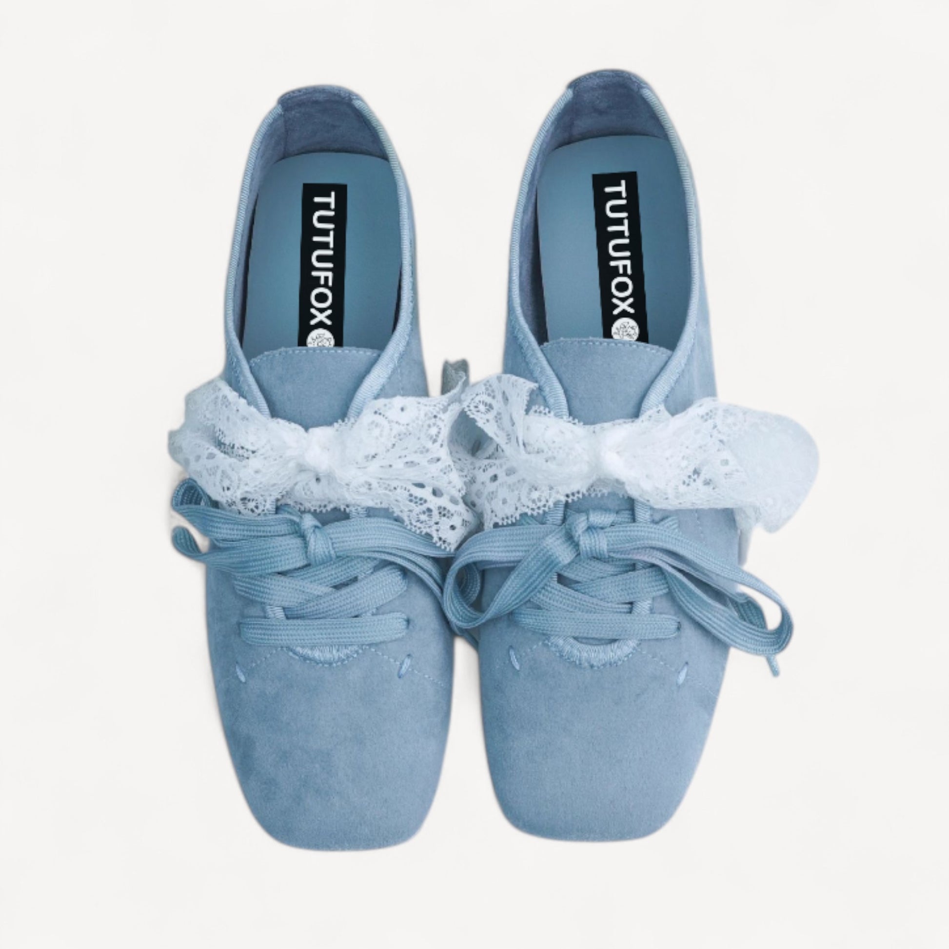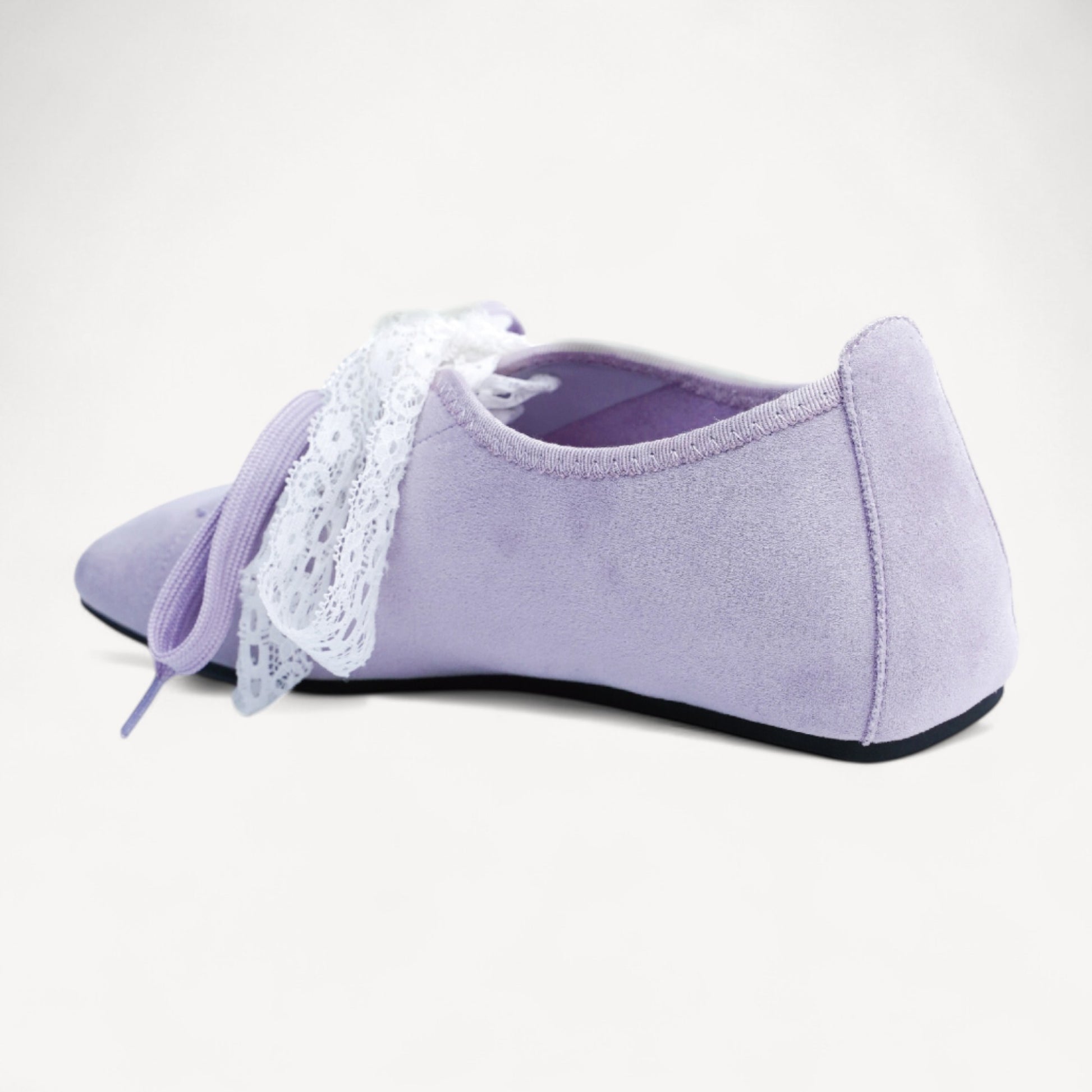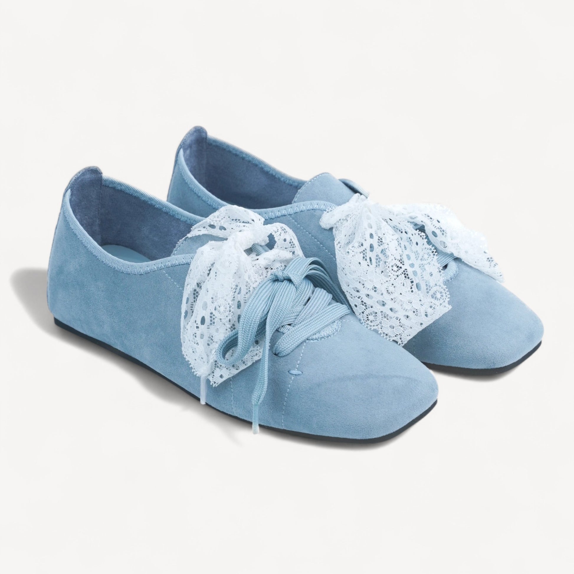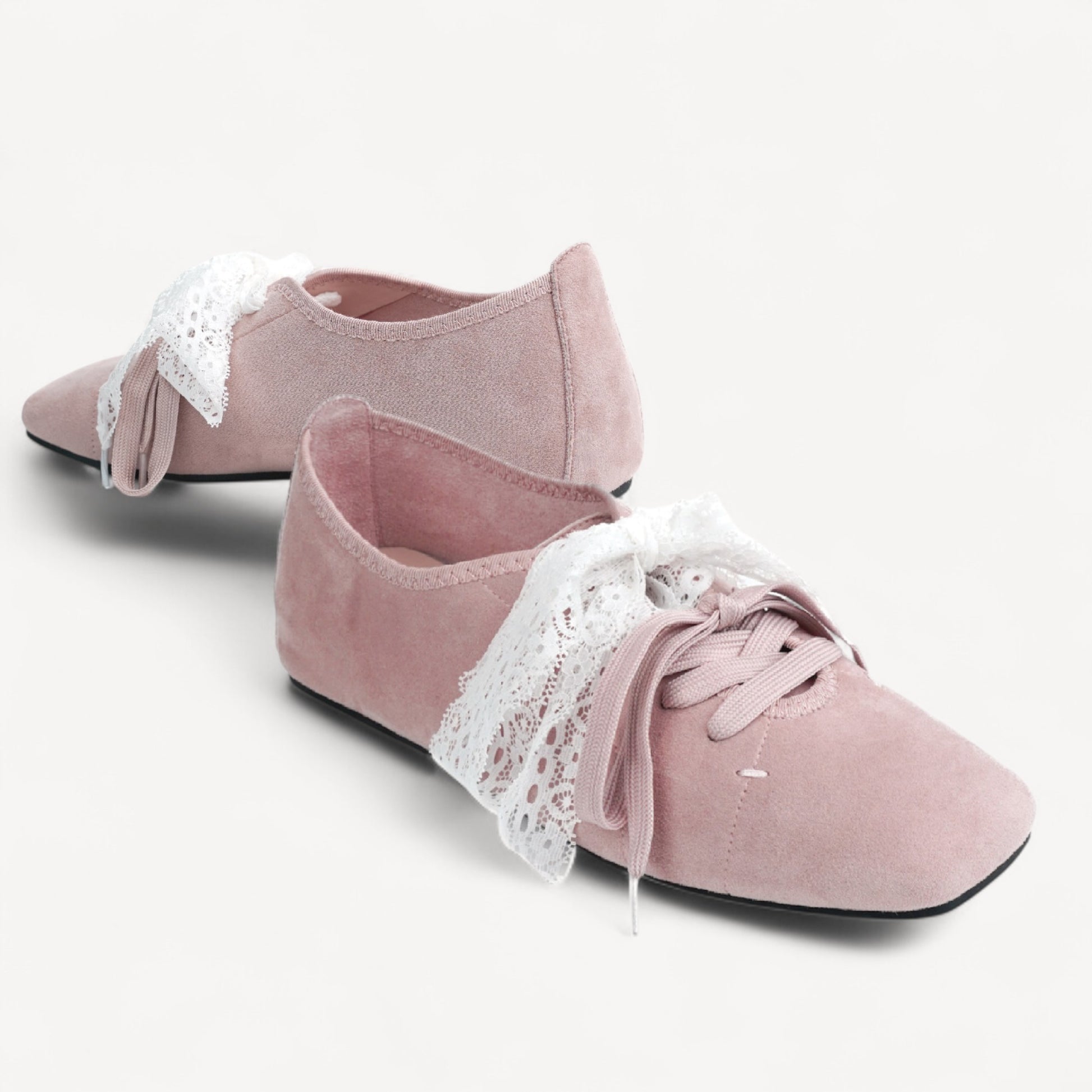 These matcha green suede ballet flats feature delicate lace straps, offering ballet-inspired grace with modern comfort. Soft suede and a refined silhouette make them ideal for casual outings, brunch, or relaxed weekends. Lightweight and versatile, they add a subtle, refreshing touch to any outfit.