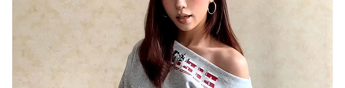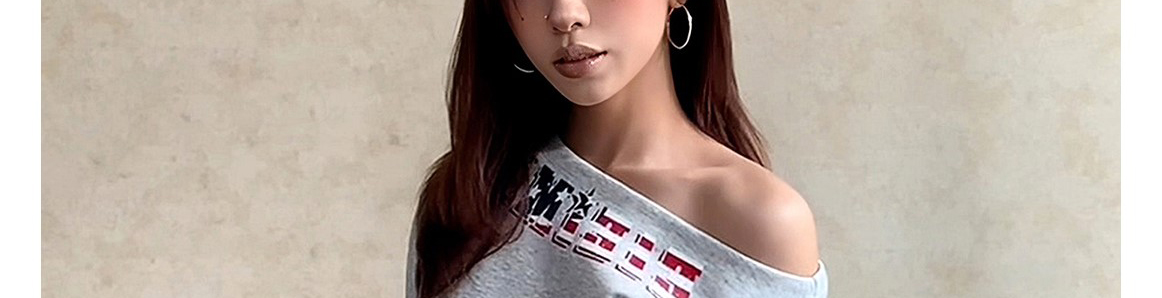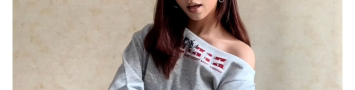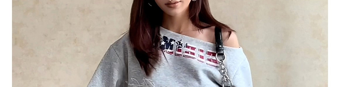 Spicy girl off-shoulder hoodie with letter print. Loose fit, casual and trendy for autumn.