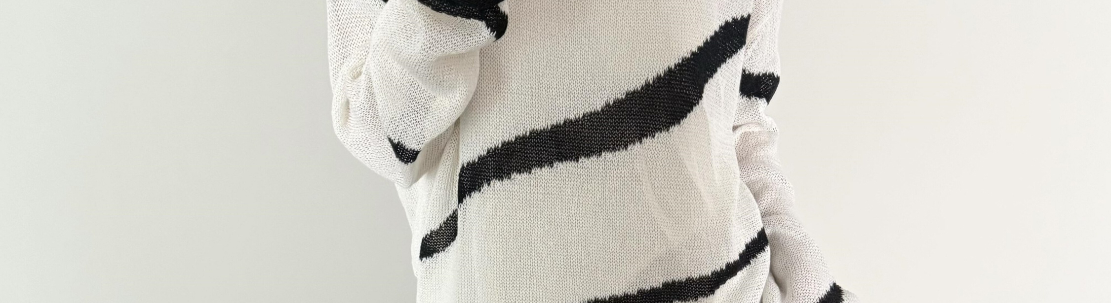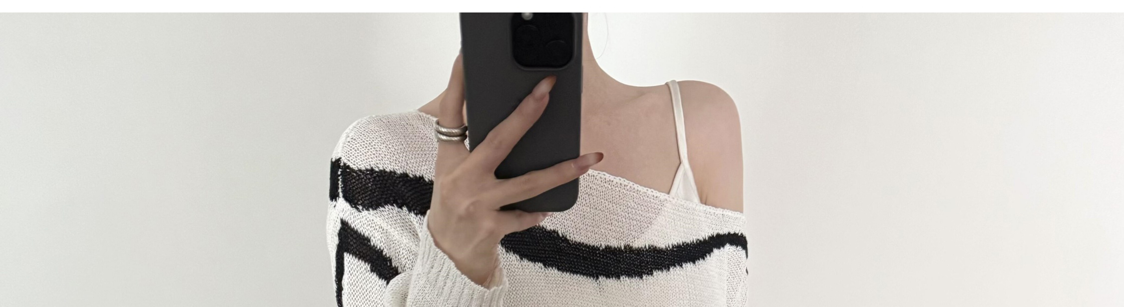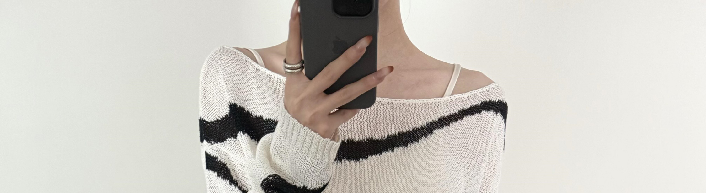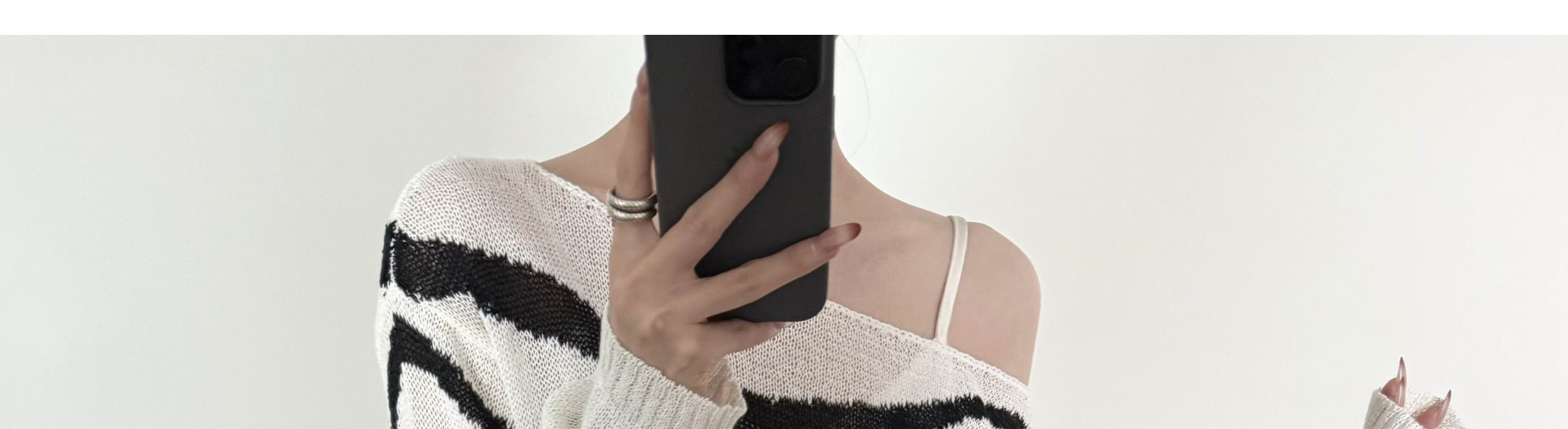 Striped knit top with off-shoulder design. Loose fit, casual and comfy for autumn wear.